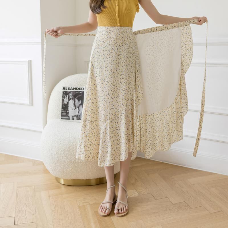スカート ロングスカート フレアスカート 膝下 ミモレ ミモレ丈 スクエアネック フレア セミフレア Aライン シフォン ウエストリボン ハイウエスト 大人可愛い 上品 おしゃれ ラブリー キュート ガーリー 花柄 小花柄 フラワー 春 夏 10代 20代 30代 40代 50代 60代 レディース 女性用 ママ デート 普段使い お揃い 双子 モテ インスタ映え サイズ フリーサイズ ワンサイズ 色展開 白 ホワイト 黒 ブラック 青 ブルー 緑 グリーン 黄色 イエロー ピンク カラバリ | Bonny Me
