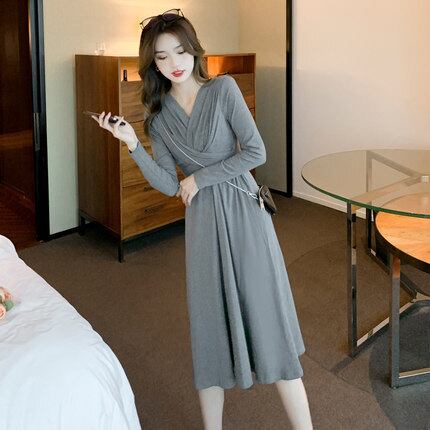 ワンピース デート 膝丈 ひざ丈 ミモレ ミモレ丈 袖あり 長袖 Vネック スリム タイト 細身 かわいい 大人可愛い きれいめ シンプル カジュアル 大人 上品 おしゃれ お洒落 主役級 存在感 春 秋 10代 20代 30代 レディース 女性用 OL 学生 デート お出かけ 公園デビュー 女子会 休日 イベント 旅行 着回し 普段使い ファッション コーデ 楽ちん モテ トレンド 流行 インスタ映え S M L XL 灰色 グレー | Bonny Me
