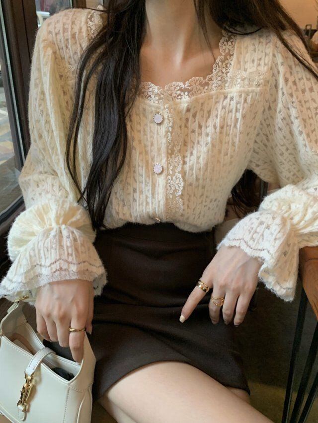 トップス デート シャツ ブラウス カットソー 袖あり 長袖 レース かわいい 大人可愛い きれいめ シンプル カジュアル 大人 上品 おしゃれ お洒落 主役級 存在感 春 秋 10代 20代 30代 レディース 女性用 OL 学生 デート お出かけ 公園デビュー 女子会 休日 イベント 旅行 着回し 普段使い ファッション コーデ 楽ちん モテ トレンド 流行 インスタ映え M L XL 2XL 3XL 4XL 白 ホワイト | Bonny Me