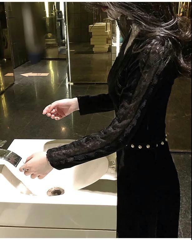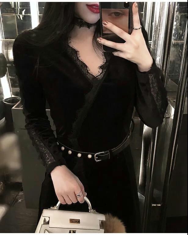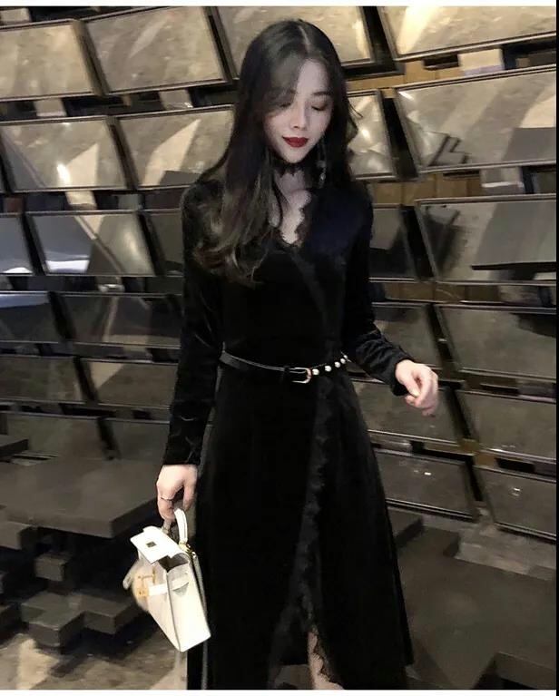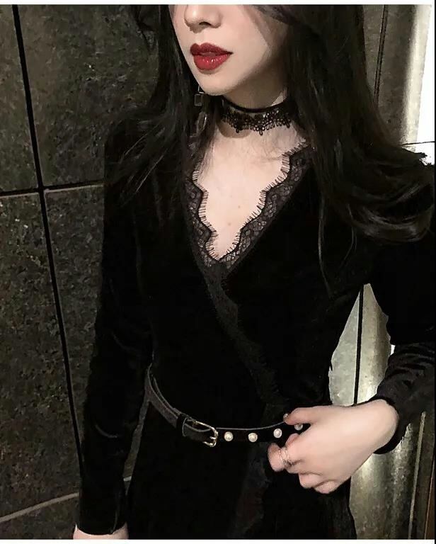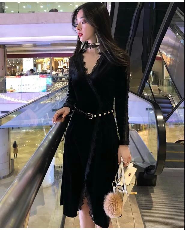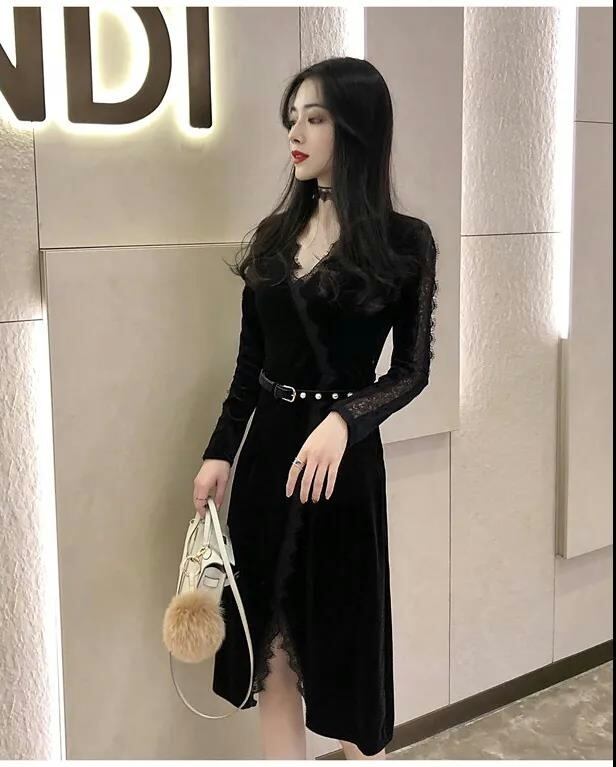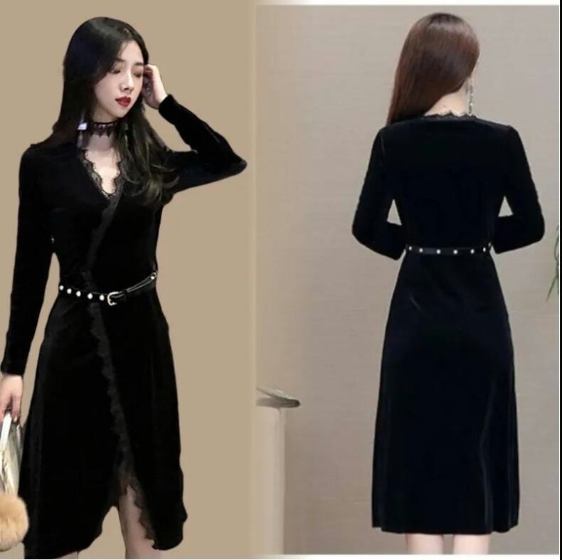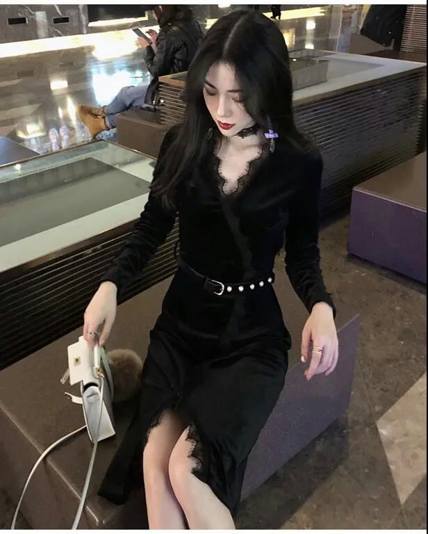 ワンピース 膝丈 ひざ丈 膝下 長袖 Vネック フリル かわいい 大人可愛い きれいめ シンプル 大人 上品 おしゃれ お洒落 かっこいい レトロ 大人可愛い 大人女子 こなれ感 ラフ クール モード系 セクシー エレガント 無地 秋 20代 30代 レディース 女性用 OL 通勤 デート 女子会 休日 パーティー イベント ホテル デート 韓国 韓国系 オルチャン ファッション スタイル 美脚 M L XL 2XL 3XL 大きいサイズ 大きめ 色展開 黒 ブラック | Bonny Me