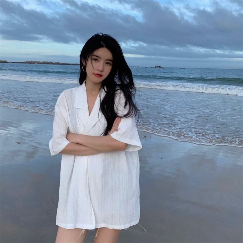 トップス 半袖 シャツ ブラウス スーツカラー フロントボタン ワンボタン 夏 薄い 新作 ゆったり ミドルロング丈 洋風 シック 羽織物 プリーツ加工 楊柳 ビッグサイズ 韓国 ルーズ しなやか エイジレス 足長効果 モデルライク 大人女子 レディース オシャレ シック 細見え おしゃれ ファッショナブル スマート見え スッキリ見え 体型カバー 華奢見え ヤセ見え サマ見え こなれ感 ワンサイズ ホワイト ブラック | Bonny Me