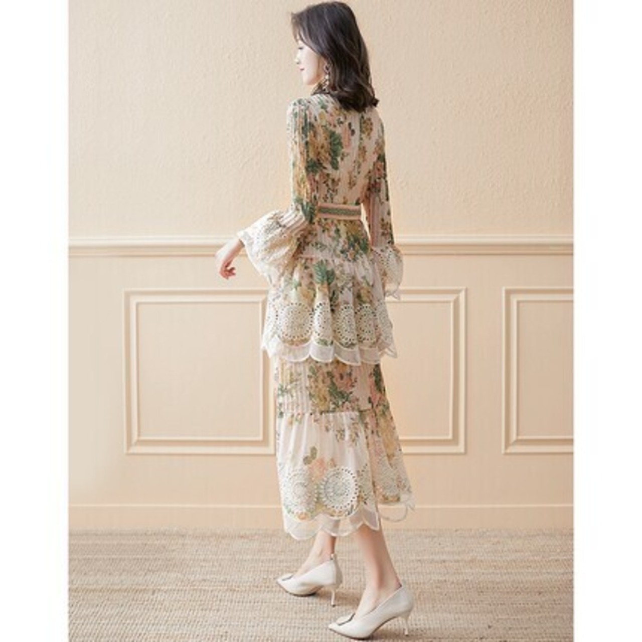 ワンピース デート ロング ロング丈 袖あり 長袖 かわいい 大人可愛い きれいめ シンプル カジュアル 大人 上品 おしゃれ お洒落 主役級 存在感 柄 花柄 春 秋 10代 20代 30代 レディース 女性用 OL 学生 デート お出かけ 公園デビュー 女子会 休日 イベント 旅行 着回し 普段使い ファッション コーデ 楽ちん モテ トレンド 流行 インスタ映え S M L XL 2XL アプリコット | Bonny Me