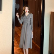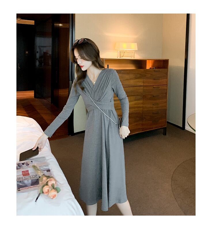 ワンピース デート 膝丈 ひざ丈 ミモレ ミモレ丈 袖あり 長袖 Vネック スリム タイト 細身 かわいい 大人可愛い きれいめ シンプル カジュアル 大人 上品 おしゃれ お洒落 主役級 存在感 春 秋 10代 20代 30代 レディース 女性用 OL 学生 デート お出かけ 公園デビュー 女子会 休日 イベント 旅行 着回し 普段使い ファッション コーデ 楽ちん モテ トレンド 流行 インスタ映え S M L XL 黒 ブラック 灰色 グレー | Bonny Me