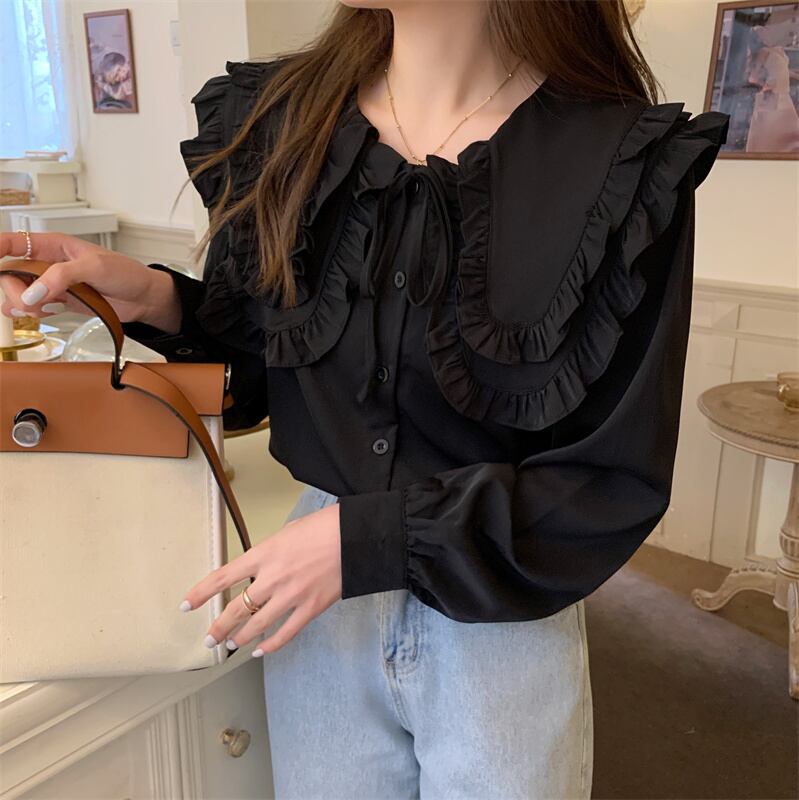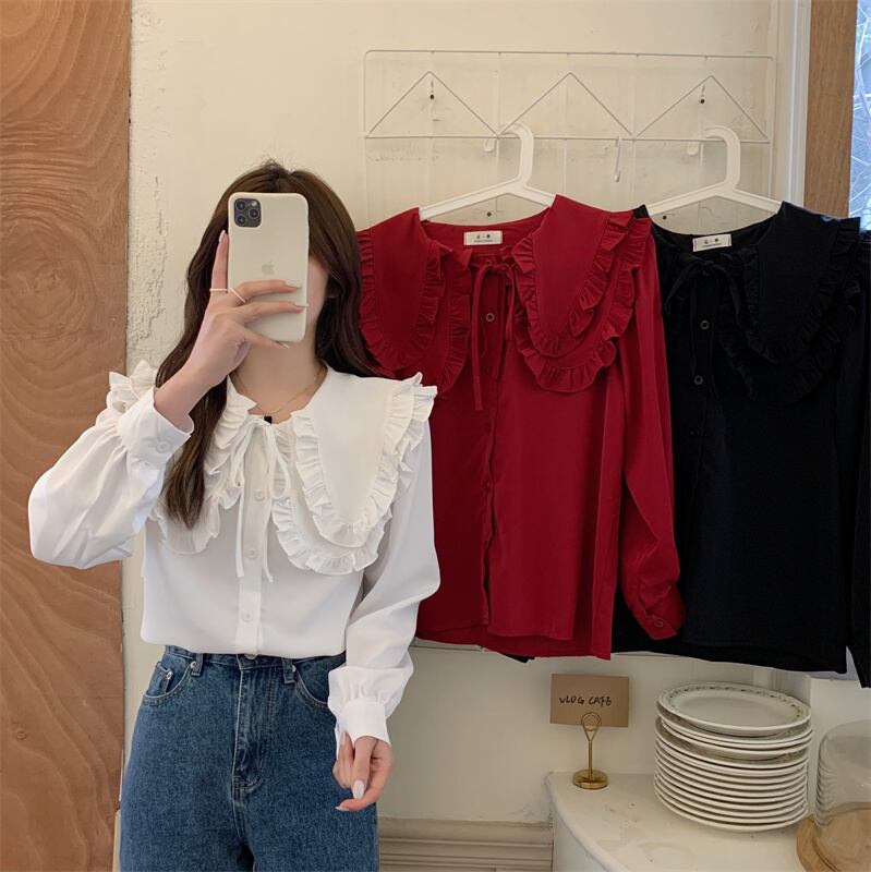 トップス デート シャツ ブラウス カットソー 袖あり 長袖 フリル かわいい 大人可愛い きれいめ シンプル カジュアル 大人 上品 おしゃれ お洒落 主役級 存在感 春 秋 冬 10代 20代 30代 レディース 女性用 OL 学生 デート お出かけ 公園デビュー 女子会 休日 イベント 旅行 着回し 普段使い ファッション コーデ 楽ちん モテ トレンド 流行 インスタ映え フリーサイズ 白 ホワイト 黒 ブラック 赤 レッド 緑 グリーン | Bonny Me