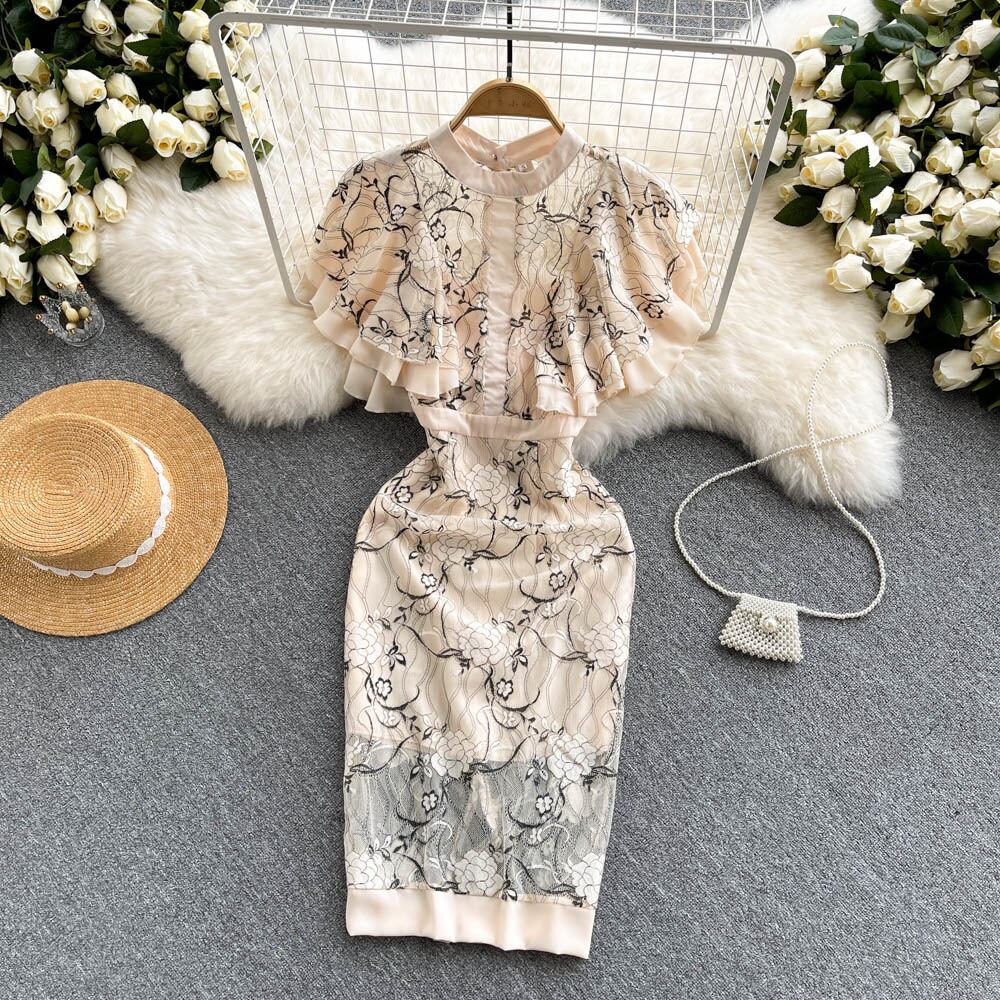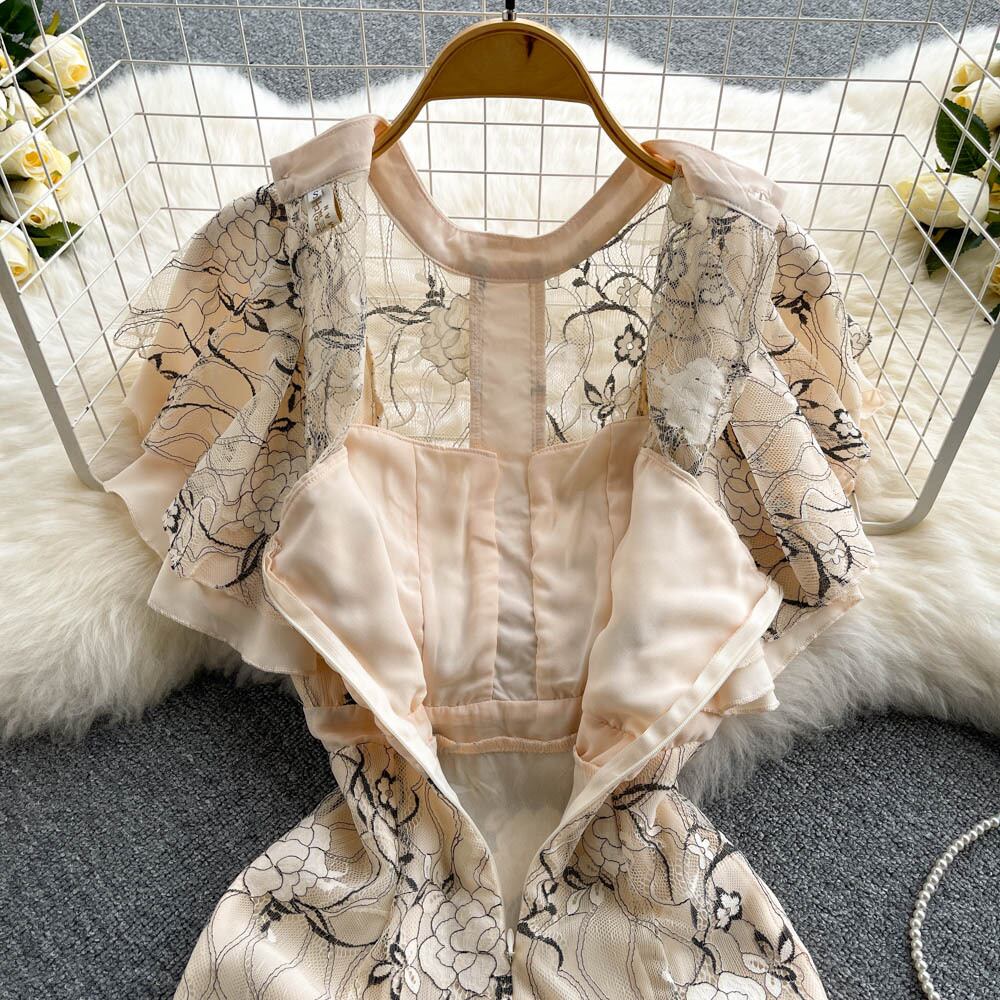 ワンピース デート ワンピドレス ミモレ ミモレ丈 袖あり 長袖 スリム タイト 細身 レース かわいい 大人可愛い きれいめ シンプル カジュアル 大人 上品 おしゃれ お洒落 主役級 存在感 春 秋 10代 20代 30代 レディース 女性用 OL 学生 デート お出かけ 公園デビュー 女子会 休日 イベント 旅行 着回し 普段使い ファッション コーデ 楽ちん モテ トレンド 流行 インスタ映え S M L アプリコット | Bonny Me