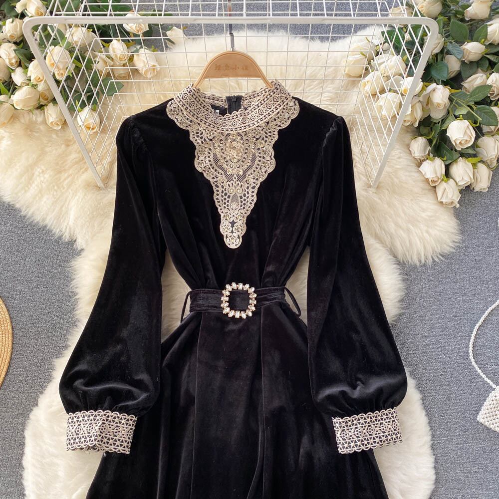 ワンピース デート 袖あり 長袖 レース かわいい 大人可愛い きれいめ シンプル カジュアル 大人 上品 おしゃれ お洒落 主役級 存在感 春 秋 冬 10代 20代 30代 レディース 女性用 OL 学生 デート お出かけ 公園デビュー 女子会 休日 イベント 旅行 着回し 普段使い ファッション コーデ 楽ちん モテ トレンド 流行 インスタ映え M L XL 2XL 黒 ブラック | Bonny Me