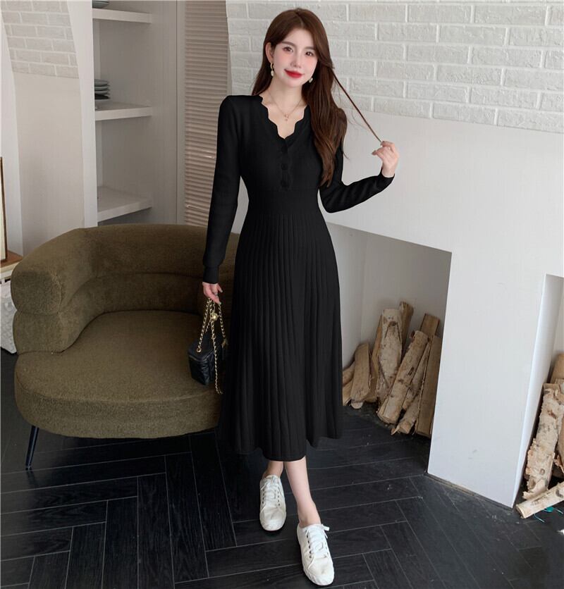 ワンピース デート ニットソー ミモレ ミモレ丈 袖あり 長袖 Vネック スリム タイト 細身 かわいい 大人可愛い きれいめ シンプル カジュアル 大人 上品 おしゃれ お洒落 主役級 存在感 春 秋 冬 10代 20代 30代 レディース 女性用 OL 学生 デート お出かけ 公園デビュー 女子会 休日 イベント 旅行 着回し 普段使い ファッション コーデ 楽ちん モテ トレンド 流行 インスタ映え S M L XL 白 ホワイト 黒 ブラック 青 | Bonny Me