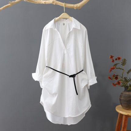 トップス デート シャツ ブラウス カットソー ミモレ ミモレ丈 袖あり 長袖 Vネック かわいい 大人可愛い きれいめ シンプル カジュアル 大人 上品 おしゃれ お洒落 主役級 存在感 春 秋 10代 20代 30代 レディース 女性用 OL 学生 デート お出かけ 公園デビュー 女子会 休日 イベント 旅行 着回し 普段使い ファッション コーデ 楽ちん モテ トレンド 流行 インスタ映え フリーサイズ ゆったり ゆる 白 ホワイト | Bonny Me