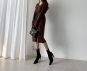 ワンピース デート ニットソー 膝丈 ひざ丈 ミモレ ミモレ丈 袖あり 長袖 Vネック かわいい 大人可愛い きれいめ シンプル カジュアル 大人 上品 おしゃれ お洒落 主役級 存在感 春 秋 冬 10代 20代 30代 レディース 女性用 OL 学生 デート お出かけ 公園デビュー 女子会 休日 イベント 旅行 着回し 普段使い ファッション コーデ 楽ちん モテ トレンド 流行 インスタ映え フリーサイズ 白 ホワイト 茶色 ブラウン | Bonny Me