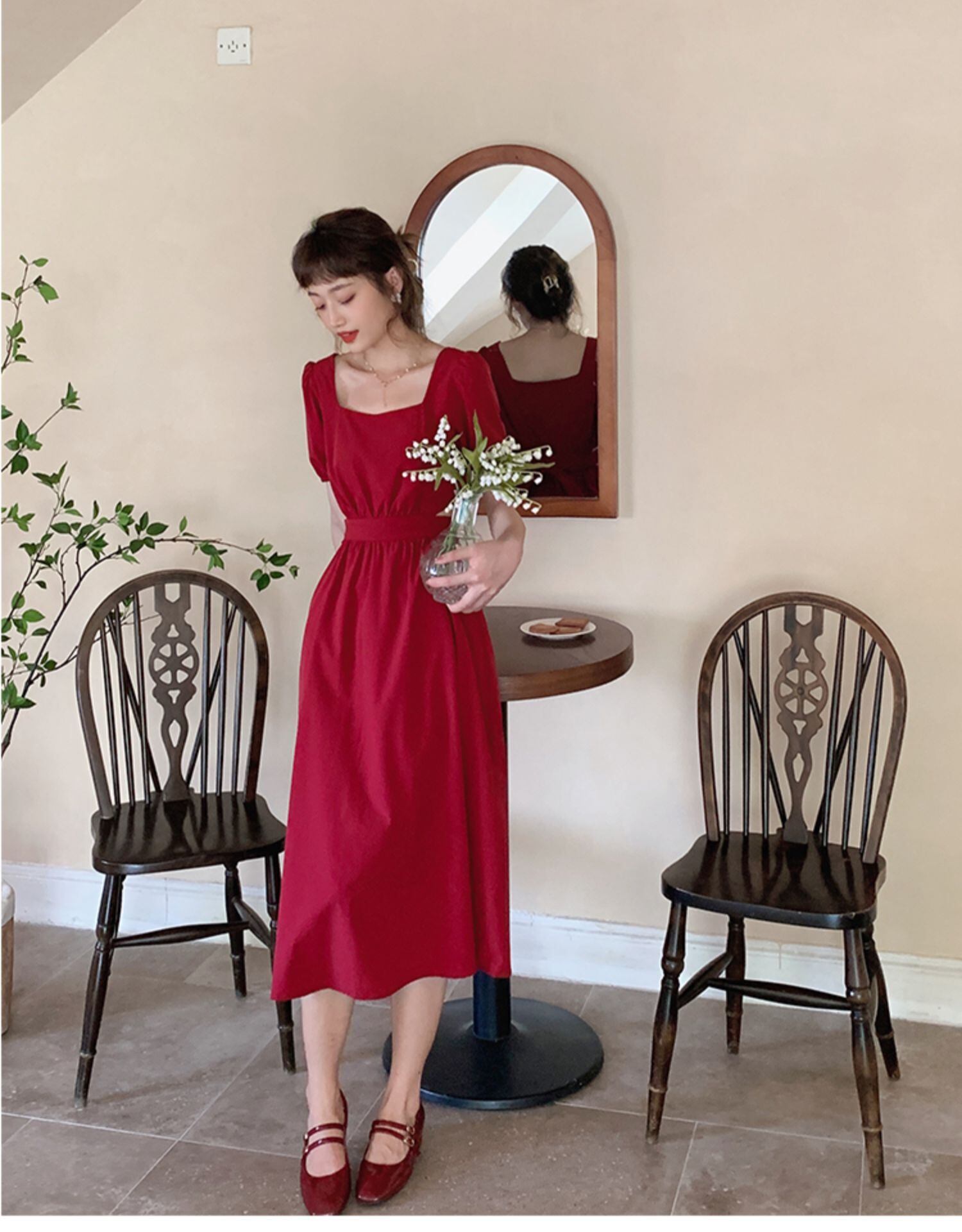 ワンピース 膝下 ミモレ ミモレ丈 ロング 半袖 スクエアネック かわいい 大人可愛い きれいめ シンプル カジュアル 大人 上品 おしゃれ お洒落 大人可愛い 大人女子 こなれ感 ラフ 無地 夏 10代 20代 レディース 女性用 普段使い 韓国 韓国系 オルチャン ファッション コーデ スタイル 楽ちん 体系カバー サイズ S M L 小さいサイズ 大きいサイズ 大きい ゆったり ゆる 色展開 黒 ブラック 赤 レッド | Bonny Me