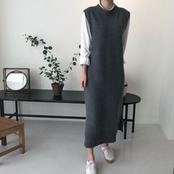 サイドスリットが入ったモノトーンのニットベストワンピース。