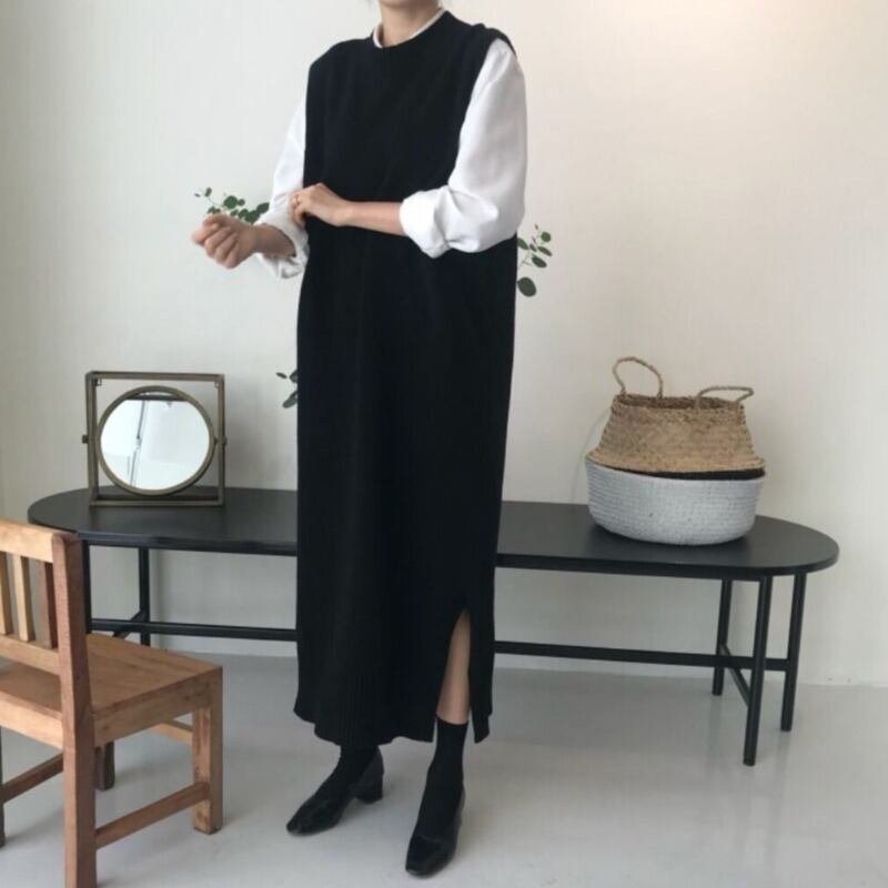 ワンピース ベスト ロング ロング丈 マキシ マキシ丈 袖なし ノースリーブ Uネック ラウンドネック スリット サイドスリット 透け感 シースルー ニット かわいい 大人可愛い シンプル カジュアル 大人 上品 おしゃれ お洒落 こなれ感 ラフ マニッシュ 抜け感 無地 春 秋 冬 10代 20代 30代 40代 50代 60代 レディース 女性用 デート お出かけ 休日 着回し 普段使い 重ね着 モテ インスタ映え サイズ フリーサイズ ワンサイズ 色展開 黒 ブラック 灰色 グレー | Bonny Me