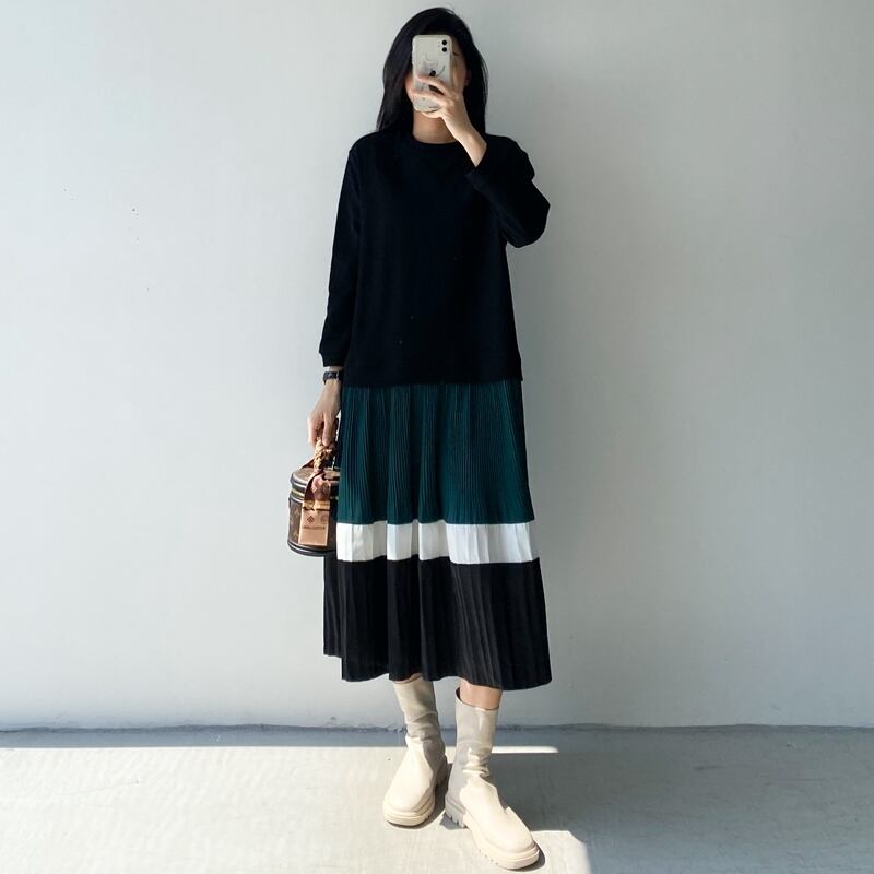 ワンピース デート フレアワンピース ミモレ ミモレ丈 袖あり 長袖 かわいい 大人可愛い きれいめ シンプル カジュアル 大人 上品 おしゃれ お洒落 主役級 存在感 春 秋 10代 20代 30代 レディース 女性用 OL 学生 デート お出かけ 公園デビュー 女子会 休日 イベント 旅行 着回し 普段使い ファッション コーデ 楽ちん モテ トレンド 流行 インスタ映え L XL 2XL 3XL ゆったり ゆる 黒 ブラック 緑 グリーン カーキ | Bonny Me