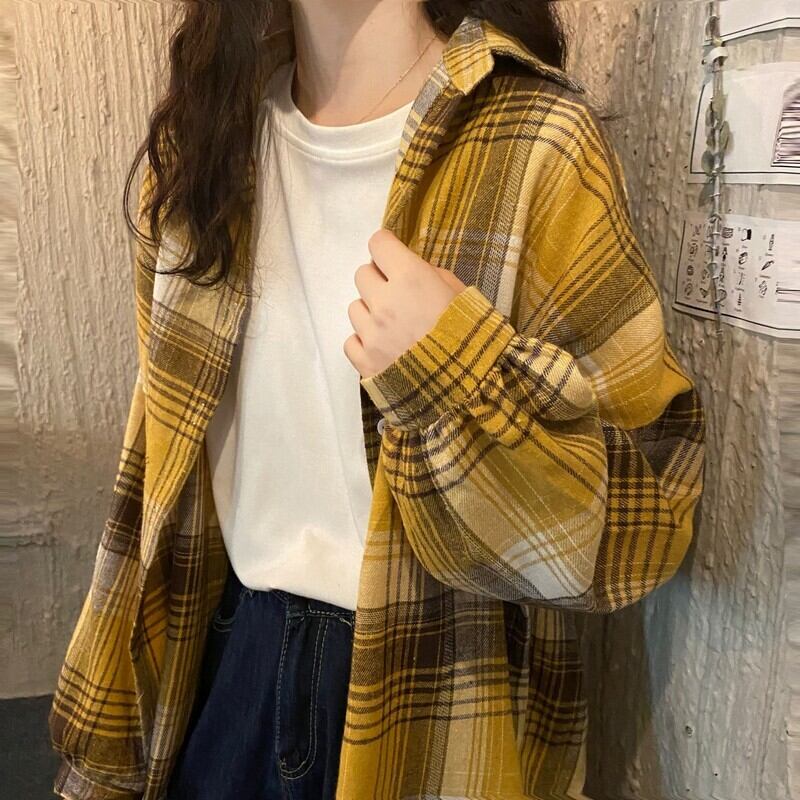トップス シャツ ブラウス 袖あり 長袖 Vネック 襟付き 薄手 かわいい 大人可愛い シンプル カジュアル おしゃれ レトロ ラフ メンズライク マニッシュ ボーイッシュ ラブリー キュート ガーリー チェック柄 格子柄 春 秋 冬 10代 20代 30代 40代 50代 60代 レディース ママ 女性用 学生 お出かけ 着回し 普段使い 重ね着 お揃い 双子 定番 サイズ フリーサイズ ワンサイズ 色展開 茶色 ブラウン 黄色 イエロー ピンク オレンジ カラバリ | Bonny Me