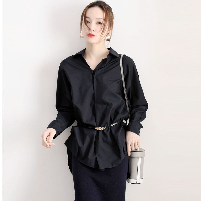 トップス シャツ ブラウス 袖あり 長袖 Vネック 襟付き かわいい 大人可愛い シンプル 大人 上品 おしゃれ お洒落 かっこいい こなれ感 メンズライク マニッシュ ルーズ クール モダン フォーマル 無地 春 秋 冬 10代 20代 30代 40代 50代 60代 レディース 女性用 ママ OL 学生 お出かけ 着回し 普段使い 重ね着 お揃い 双子 モテ 定番 インスタ映え サイズ S M L XL 色展開 白 ホワイト 黒 ブラック モノトーン カラバリ | Bonny Me