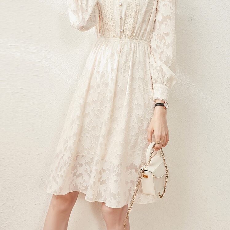 ワンピース フレアワンピース 膝丈 ひざ丈 膝上 膝下 袖あり 長袖 スタンドカラー ハイネック フレア セミフレア 刺繍 ウエストマーク かわいい 大人可愛い 大人 上品 おしゃれ お洒落 こなれ感 ラブリー キュート ガーリー モダン フォーマル 春 秋 10代 20代 30代 40代 50代 60代 レディース 女性用 ママ 学生 お出かけ 着回し 普段使い 重ね着 お揃い 双子 モテ インスタ映え サイズ S M L XL 色展開 白 ホワイト 黒 ブラック モノトーン カラバリ | Bonny Me