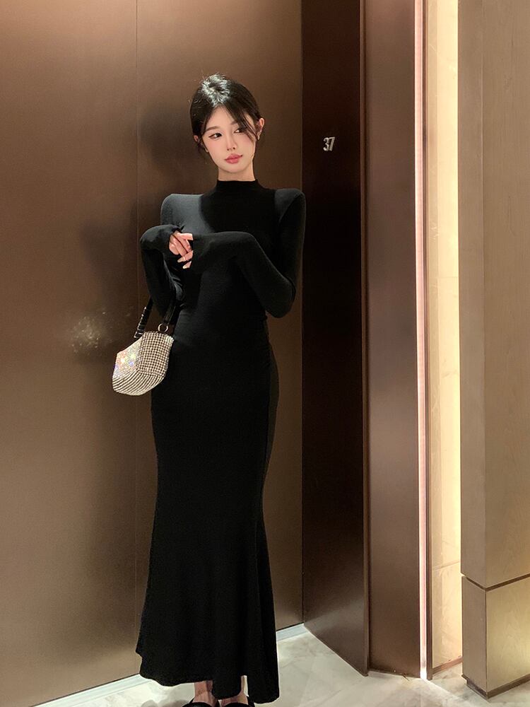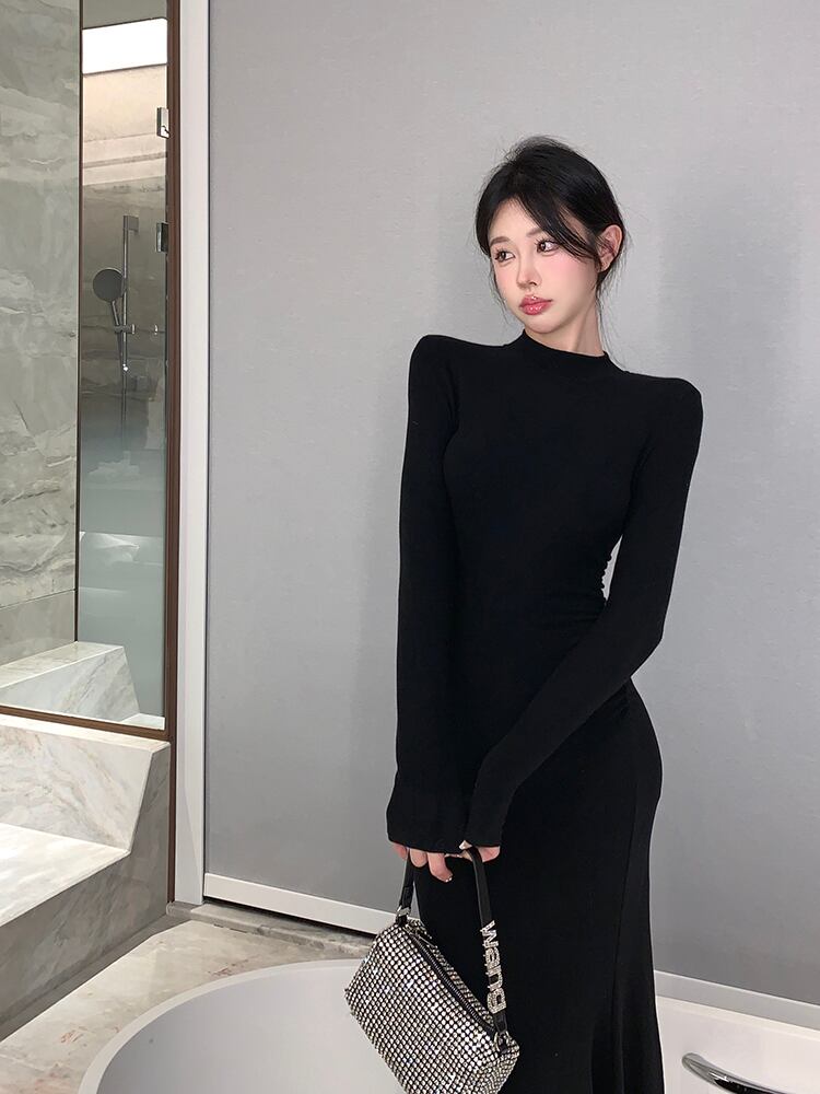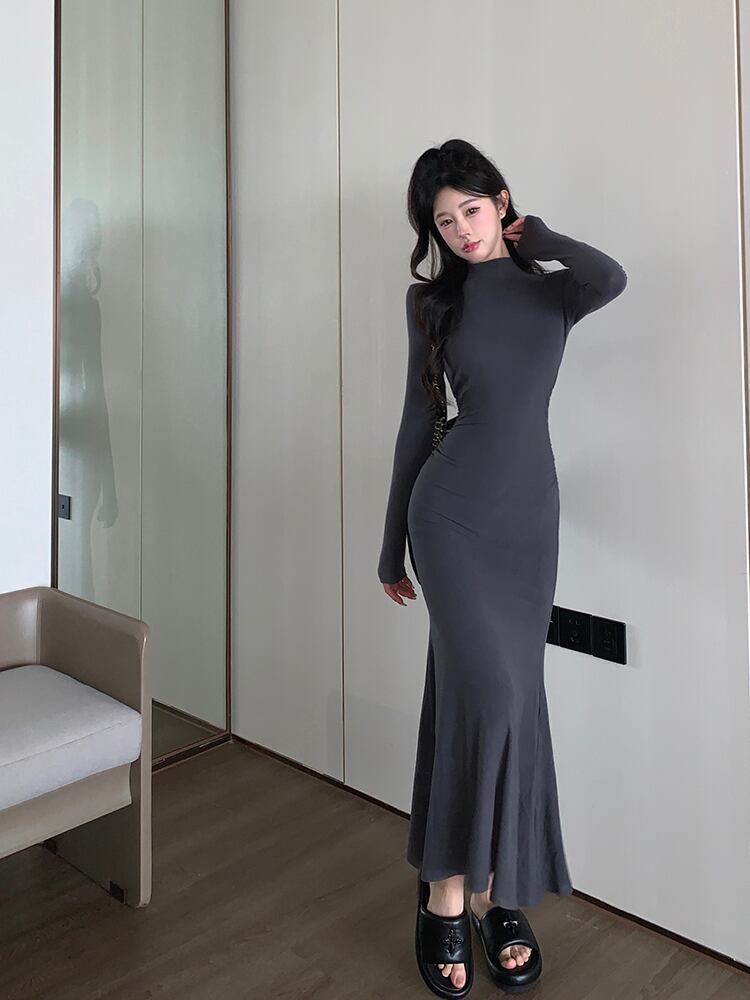ワンピース デート ロング ロング丈 袖あり 長袖 スリム タイト 細身 かわいい 大人可愛い きれいめ シンプル カジュアル 大人 上品 おしゃれ お洒落 春 秋 10代 20代 30代 OL 学生 デート お出かけ 女子会 休日 旅行 着回し 普段使い ファッション コーデ スタイル 楽ちん モテ トレンド 流行 インスタ映え S M ホワイト ブラック 灰色 グレー | Bonny Me