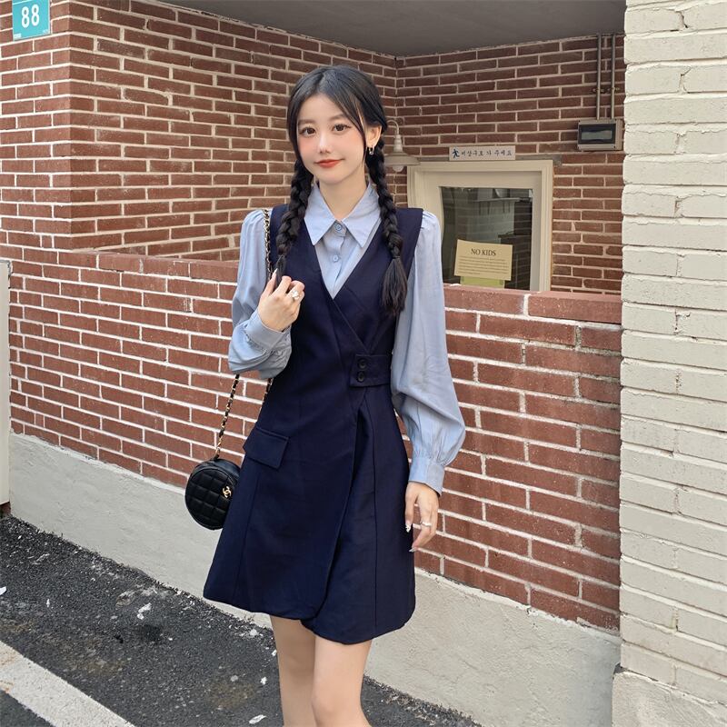 トップス スカート シャツ ブラウス ジャンパースカート ジャンスカ ミニ ミニ丈 ショート ショート丈 長袖 Vネック 襟付き 2点セット ツーピース お得 かわいい ラフ キュート ガーリー 春 秋 冬 10代 20代 30代 40代 50代 60代 レディース 女性用 ママ お出かけ 休日 普段使い モテ 体形カバー プレゼント ギフト インスタ映え サイズ L XL 2XL 3XL 4XL 大きいサイズ 大きい 大きめ ビッグサイズ ゆったり ゆる 色展開 青 ブルー 茶色 ブラウン | Bonny Me