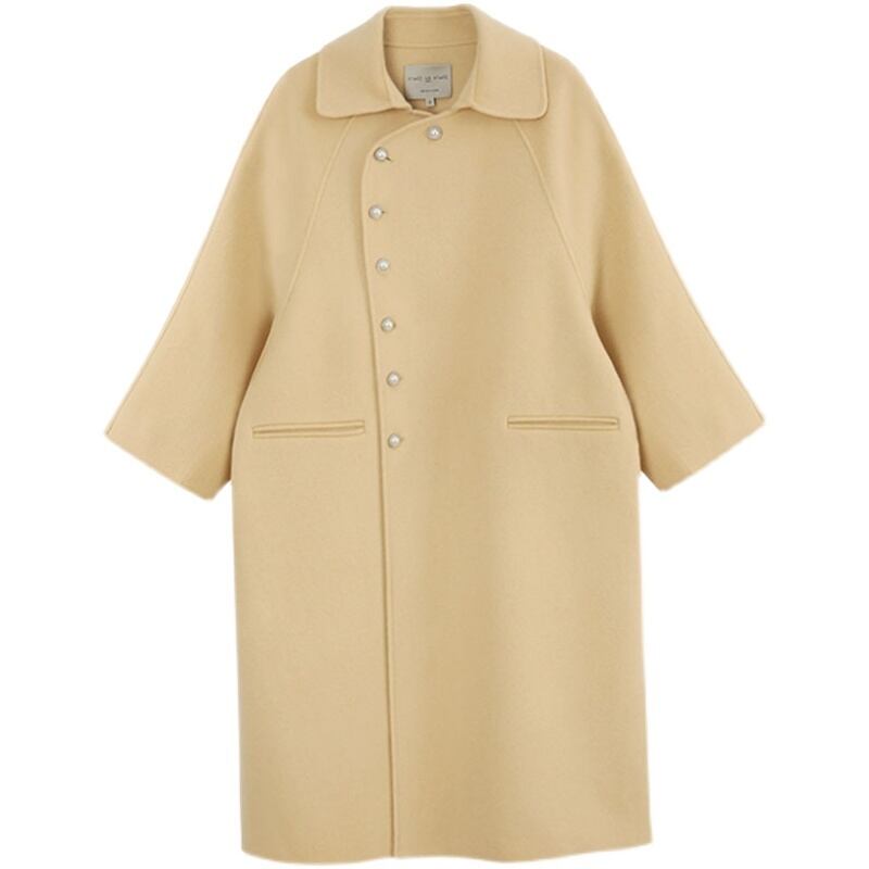 ボタンラインのデザインがかわいい膝丈ウールコート。