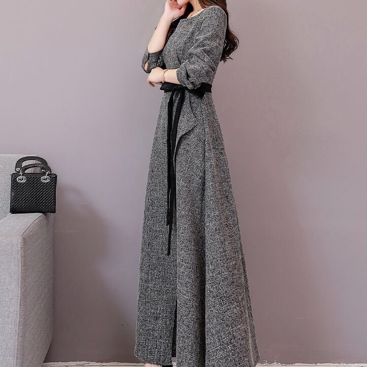 ワンピース フレアワンピース ロング ロング丈 マキシ マキシ丈 袖あり 長袖 フレア Aライン ウエストマーク ウエストリボン スリット サイドスリット かわいい 大人可愛い きれいめ 大人 大人女子 こなれ感 キュート ガーリー クール モード系 無地 秋 冬 10代 20代 30代 40代 50代 60代 レディース 女性用 ママ 学生 デート お出かけ 休日 着回し 普段使い モテ トレンド 流行 インスタ映え サイズ S M L XL 2XL 小さいサイズ 大きいサイズ 色展開 灰色 グレー | Bonny Me