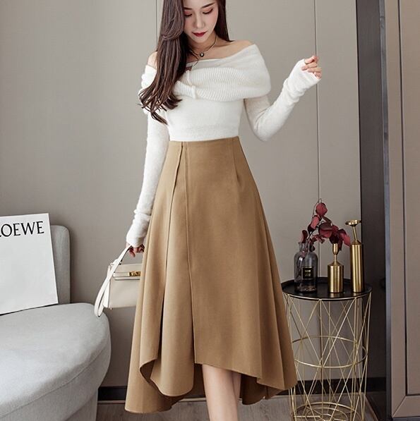 スカート ボトムス フレアスカート 膝下 ミモレ ミモレ丈 フレア アシンメトリー 切り替えデザイン スリット サイドスリット きれいめ 大人 上品 おしゃれ お洒落 かっこいい レトロ 大人女子 こなれ感 クール モード系 無地 秋 冬 10代 20代 30代 40代 50代 60代 レディース 女性用 ママ お出かけ 休日 着回し 普段使い 重ね着 お揃い 双子 モテ インスタ映え サイズ S M L XL 小さいサイズ 大きいサイズ 色展開 黒 ブラック ベージュ カーキ 大人カラー カラバリ | Bonny Me