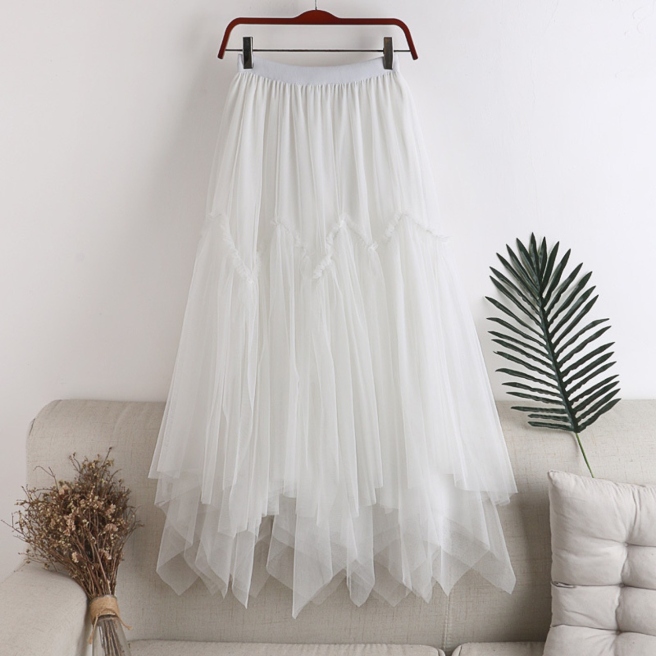 スカート ボトムス フレアスカート チュールスカート ロング丈 マキシ丈 フレア ワイド Aライン チュール シフォン フリル ふわふわ 透け感 ポリエステル かわいい 大人可愛い シンプル おしゃれ お洒落 大人女子 こなれ感 ラブリー キュート ガーリー ルーズ 主役級 存在感 無地 春 秋 10代 20代 30代 レディース 女性用 デート お出かけ 女子会 休日 パーティー 着回し 普段使い 韓国系 オルチャン ファッション 脚長 フリーサイズ ピンク グリーン ブラック アプリコット ホワイト | Bonny Me