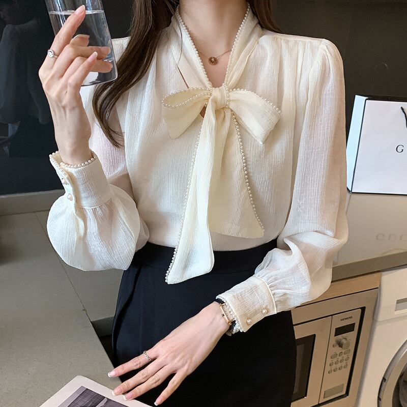 トップス デート シャツ ブラウス カットソー 袖あり 長袖 リボン かわいい 大人可愛い きれいめ シンプル カジュアル 大人 上品 おしゃれ お洒落 主役級 存在感 春 秋 10代 20代 30代 レディース 女性用 OL 学生 デート お出かけ 公園デビュー 女子会 休日 イベント 旅行 着回し 普段使い ファッション コーデ 楽ちん モテ トレンド 流行 インスタ映え S M L XL 2XL 白 ホワイト | Bonny Me