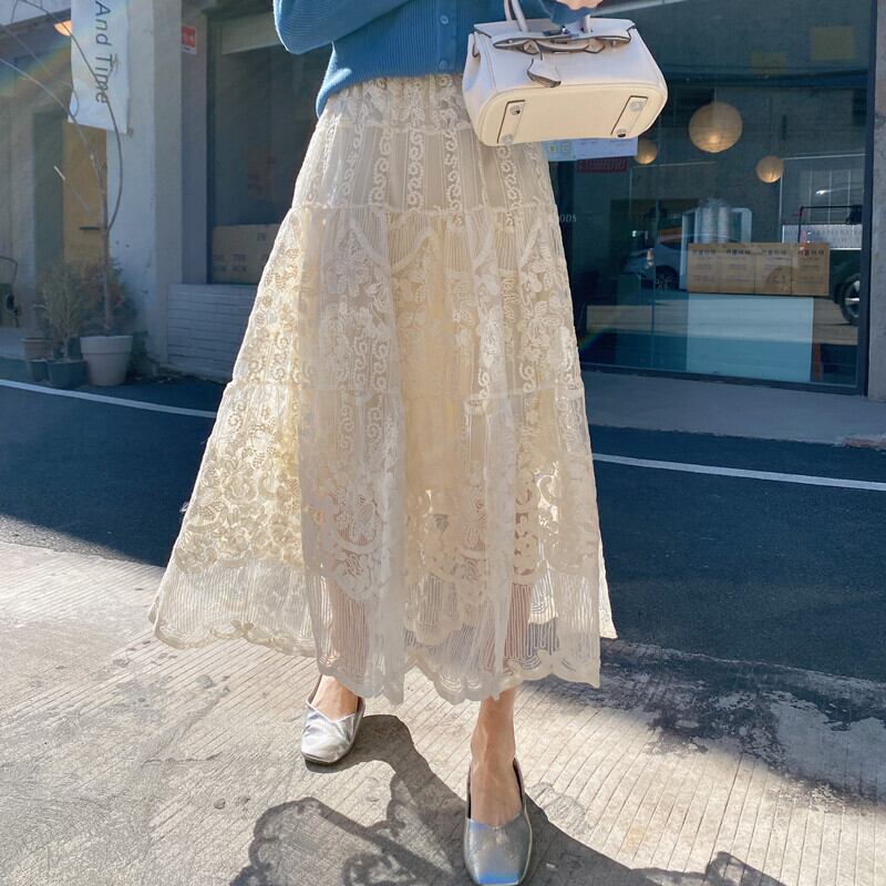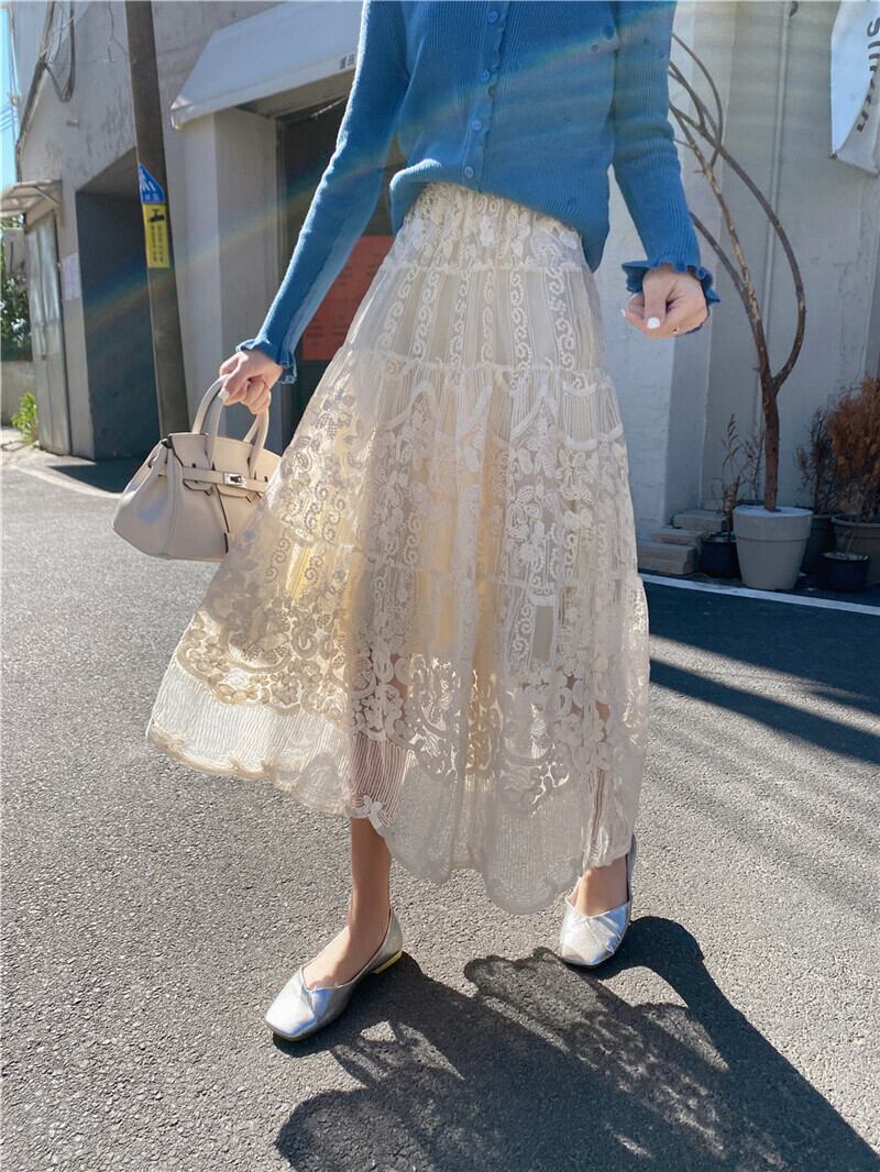 スカート デート フレアスカート ミモレ ミモレ丈 レース かわいい 大人可愛い きれいめ シンプル カジュアル 大人 上品 おしゃれ お洒落 主役級 存在感 春 秋 10代 20代 30代 レディース 女性用 OL 学生 デート お出かけ 公園デビュー 女子会 休日 イベント 旅行 着回し 普段使い ファッション コーデ 楽ちん モテ トレンド 流行 インスタ映え フリーサイズ 白 ホワイト 黒 ブラック 茶色 ブラウン | Bonny Me