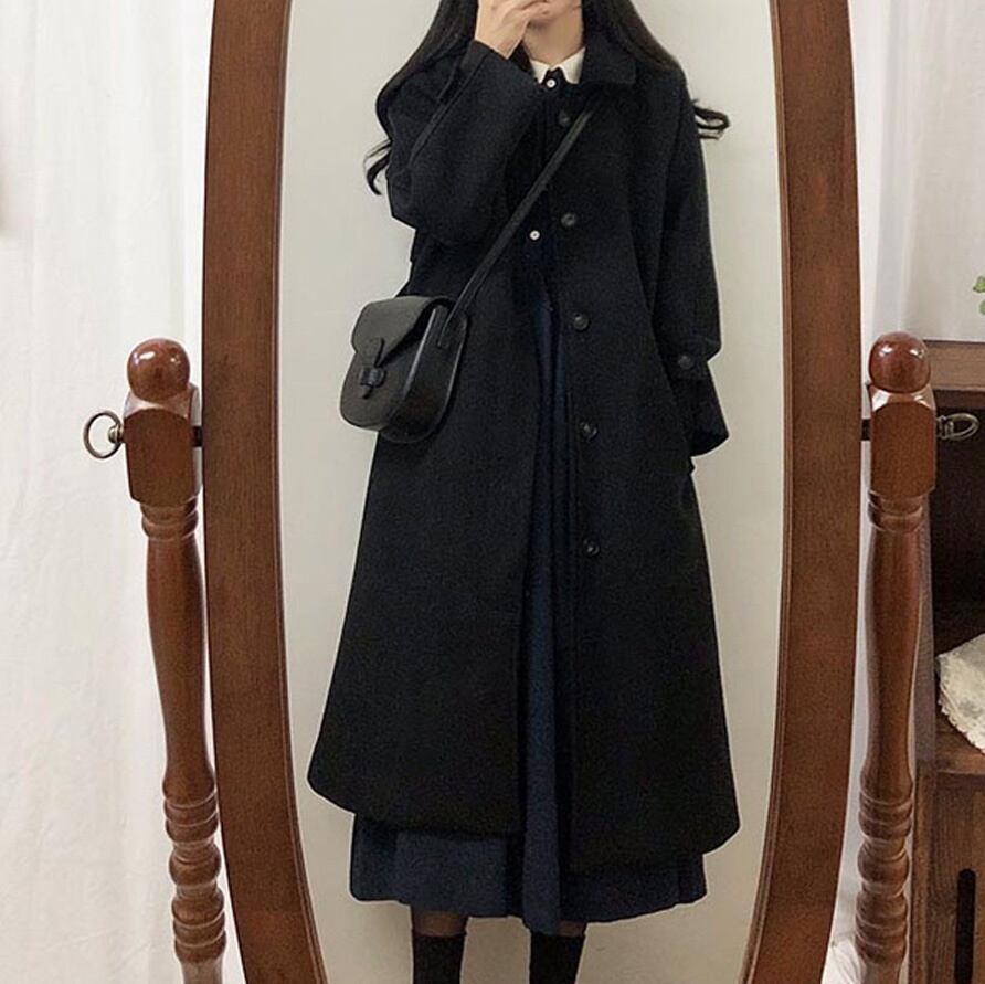 アウター ロングコート 膝下 ミモレ ミモレ丈 袖あり 長袖 Vネック 襟付き 前開き かわいい 大人可愛い カジュアル おしゃれ お洒落 レトロ 無地 秋 冬 10代 20代 30代 40代 50代 60代 レディース 女性用 ママ 学生 デート お出かけ 休日 普段使い 重ね着 暖かい 防寒 モテ プレゼント ギフト インスタ映え サイズ XS S M L XL 小さいサイズ 大きいサイズ 色展開 黒 ブラック 茶色 ブラウン 灰色 グレー カラバリ | Bonny Me