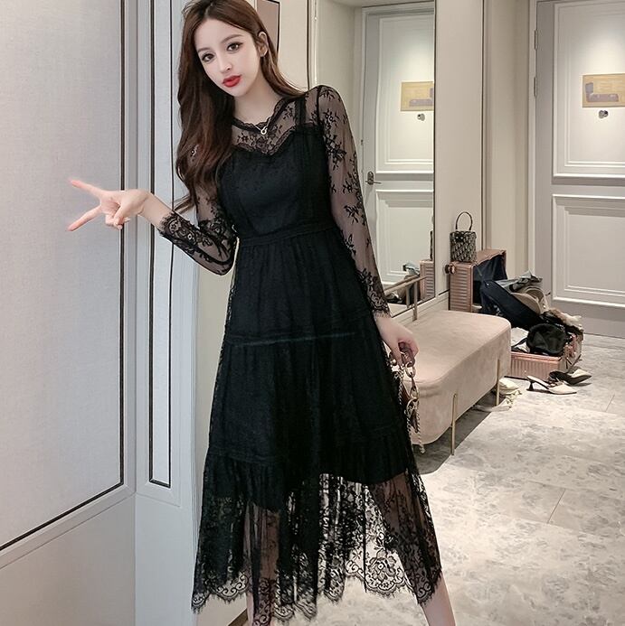 ドレス ワンピース Aラインドレス ミモレ ミモレ丈 袖あり 長袖 Uネック ラウンドネック Aライン 切り替えデザイン ドッキング レース 刺繍 チュール 透け感 シースルー かわいい 大人可愛い 大人 上品 おしゃれ お洒落 かっこいい エレガント モダン エレガント ゴージャス 華やか 大人 10代 20代 30代 40代 50代 60代 レディース 女性用 イベント 高見え 格上げ インスタ映え オールシーズン シーズンレス S M L XL 小さいサイズ 大きいサイズ 色展開 黒 ブラック | Bonny Me