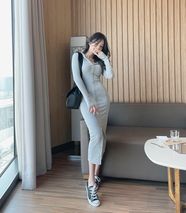 ワンピース ミモレ ミモレ丈 ロング ロング丈 マキシ マキシ丈 長袖 フード かわいい 大人可愛い きれいめ シンプル カジュアル 大人 大人可愛い 大人女子 こなれ感 ラフ ラブリー キュート 無地 秋 10代 20代 レディース 女性用 OL デート お出かけ 公園デビュー 女子会 お泊まり 休日 旅行 高原 デート 普段使い 韓国 韓国系 オルチャン ファッション コーデ スタイル 楽ちん モテ 体系カバー サイズ S M L XL 色展開 灰色 グレー | Bonny Me