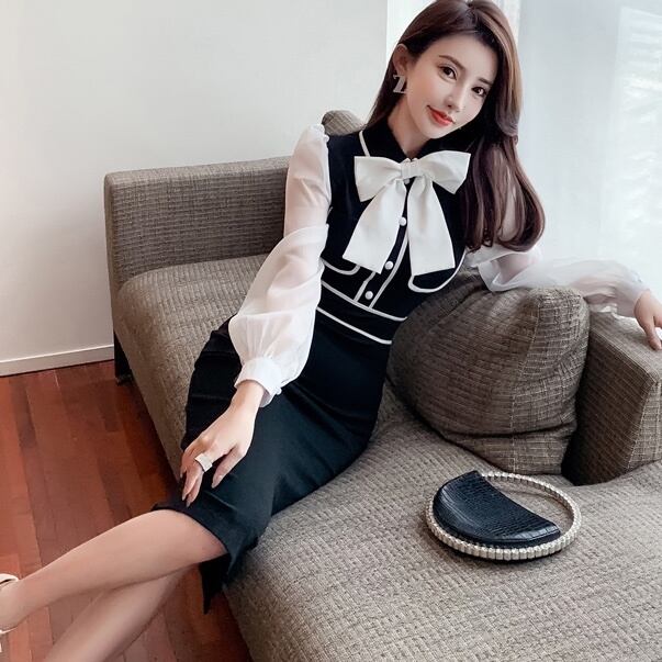ワンピース スーツ 膝丈 ひざ丈 袖あり 長袖 Vネック リボン ウエストマーク 切り替えデザイン ドッキング 大人可愛い おしゃれ お洒落 かっこいい レトロ 大人女子 こなれ感 ラブリー キュート ガーリー フォーマル 春 夏 秋 冬 オールシーズン シーズンレス 10代 20代 30代 40代 50代 60代 レディース 女性用 ママ お出かけ 休日 リゾート 旅行 海 プール 普段使い モテ プレゼント インスタ映え サイズ S M L XL 小さいサイズ 大きいサイズ 色展開 黒 ブラック | Bonny Me
