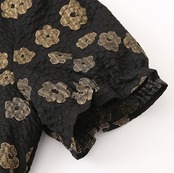 ゴールドの花柄がかわいい膝丈チャイナ風ワンピース。