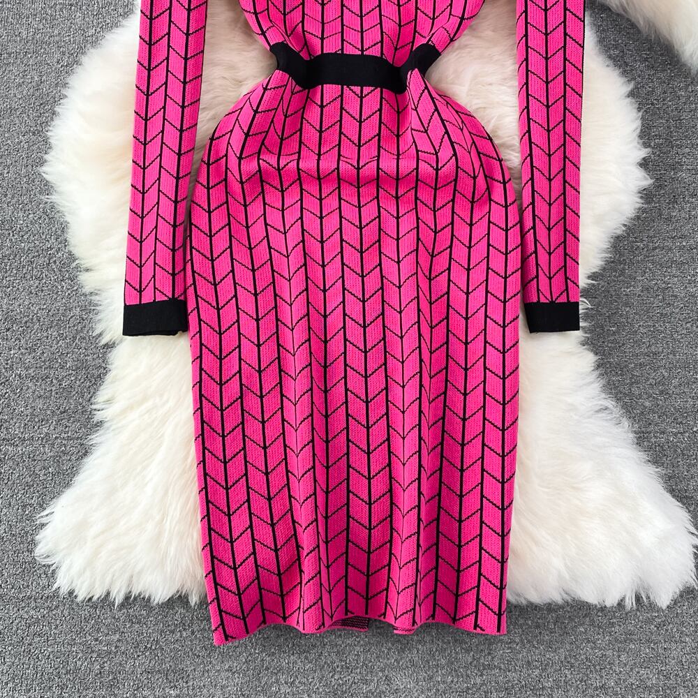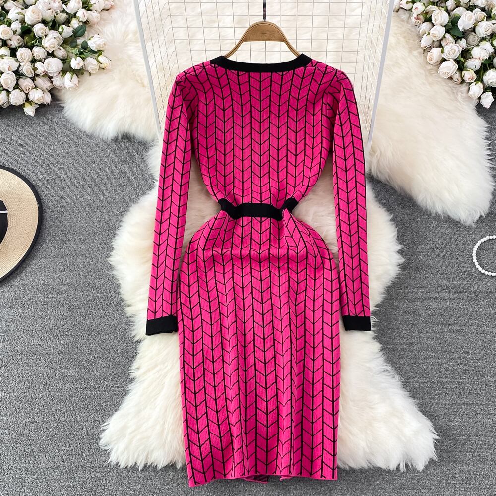 ワンピース セーター 膝丈 ひざ丈 袖あり 長袖 Vネック ウエストマーク ニット かわいい 大人可愛い おしゃれ お洒落 かっこいい レトロ 個性的 クール エレガント 主役級 存在感 秋 冬 10代 20代 30代 40代 50代 60代 レディース 女性用 ママ 学生 デート お出かけ 休日 着回し 普段使い 重ね着 お揃い 双子 モテ インスタ映え サイズ フリーサイズ ワンサイズ 色展開 黒 ブラック 緑 グリーン 灰色 グレー ベージュ ピンク オレンジ ネイビー カラバリ | Bonny Me