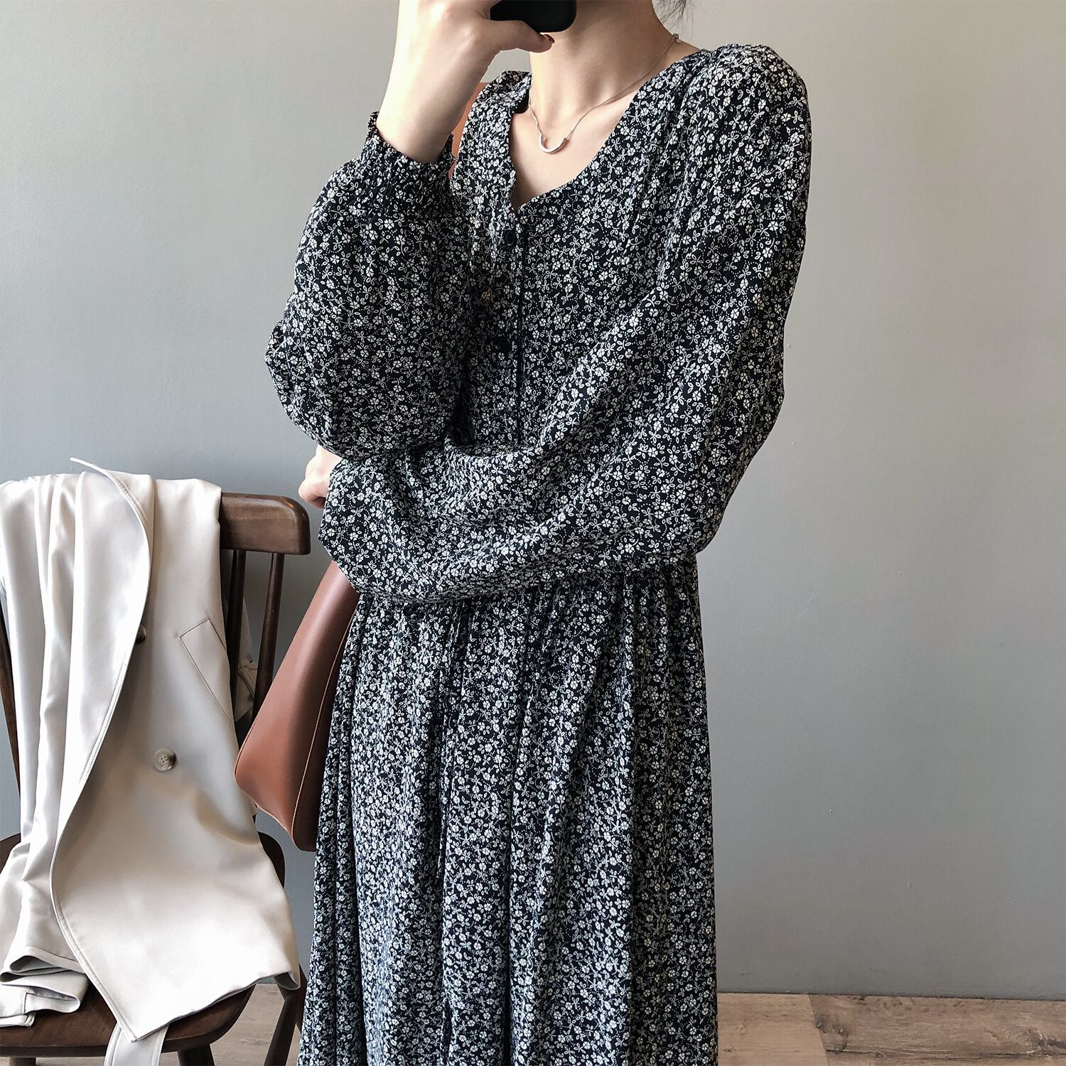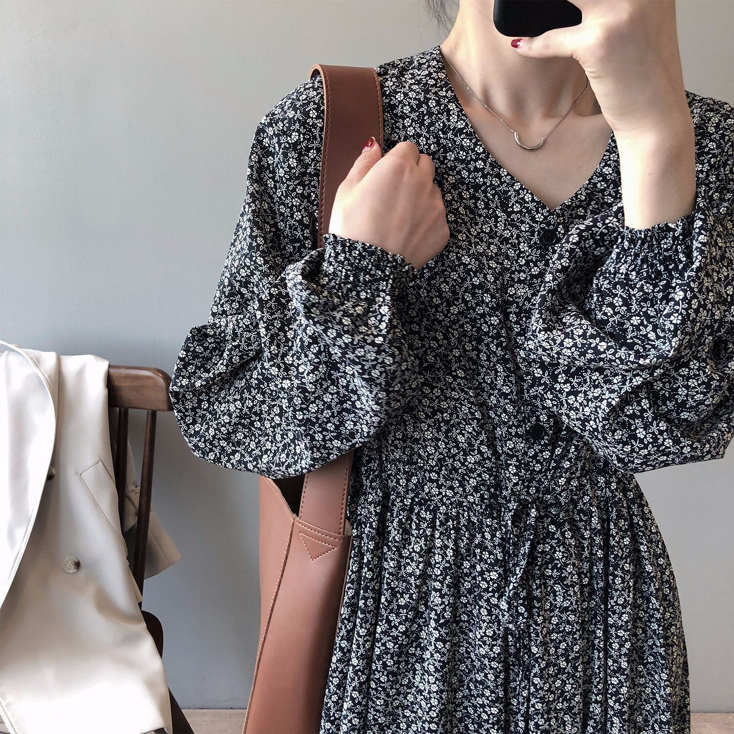 ワンピース ロング ロング丈 袖あり 長袖 Vネック シフォン ウエストマーク ウエストリボン かわいい 大人可愛い おしゃれ お洒落 かっこいい 大人女子 こなれ感 ラフ ラブリー キュート ガーリー 花柄 小花柄 フラワー 春 秋 10代 20代 30代 40代 50代 60代 レディース 女性用 ママ デート お出かけ 休日 高原 ホテル ガーデン レストラン ショッピング 着回し 普段使い 重ね着 モテ 体形カバー インスタ映え サイズ M L 小さいサイズ 大きいサイズ 色展開 黒 ブラック | Bonny Me