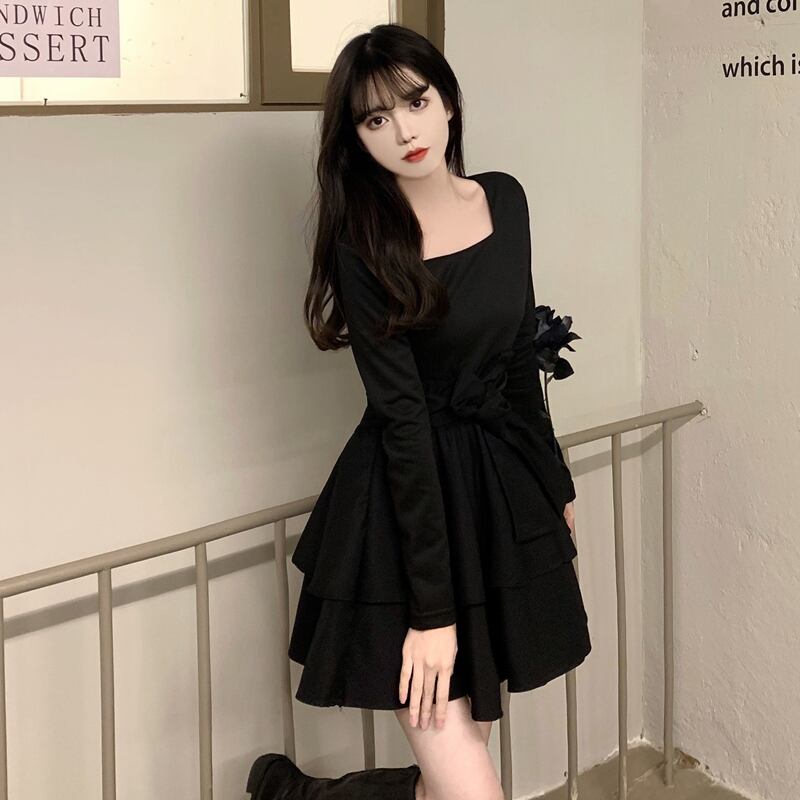 ワンピース フレアワンピース ショート ショート丈 膝上 袖あり 長袖 スクエアネック Aライン リボン ウエストマーク ウエストリボン 薄手 かわいい 大人可愛い おしゃれ お洒落 ラブリー キュート ガーリー 個性的 主役級 存在感 春 秋 10代 20代 30代 40代 50代 60代 レディース 女性用 ママ お出かけ 休日 着回し 普段使い 重ね着 モテ インスタ映え サイズ M L XL 2XL 3XL 4XL 小さいサイズ 大きいサイズ 大きい 大きめ ビッグサイズ 色展開 黒 ブラック | Bonny Me