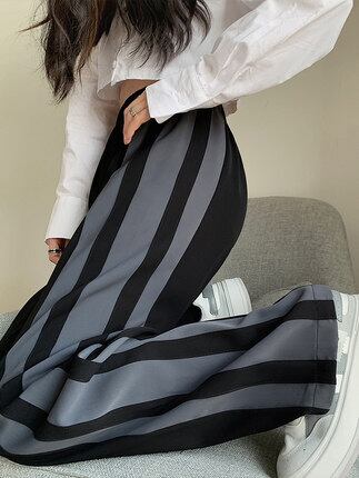 サイドラインが特徴的なワイドパンツ。