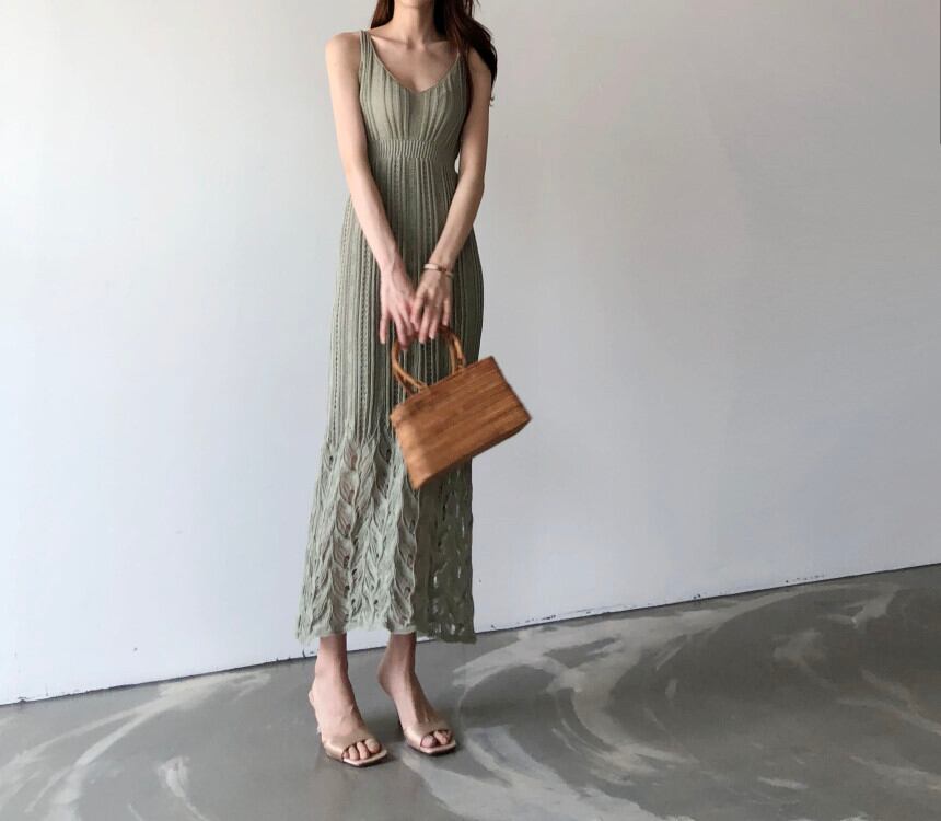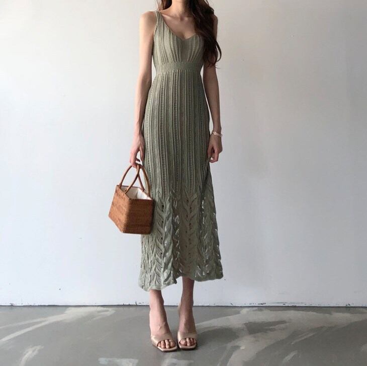 ワンピース ロングスカート 膝下 ミモレ 7分丈 ノースリーブ Vネック スリム タイト 細身 かわいい 大人可愛い きれいめ シンプル カジュアル 大人 上品 おしゃれ お洒落 大人可愛い 大人女子 こなれ感 無地 夏 20代 30代 レディース 女性用 デート お出かけ 女子会 お泊まり 休日 リゾート 旅行 海 プール ガーデン デート 普段使い 韓国 韓国系 オルチャン ファッション コーデ スタイル 楽ちん 体系カバー サイズ ワンサイズ フリーサイズ 色展開 白 ホワイト 緑 グリーン | Bonny Me