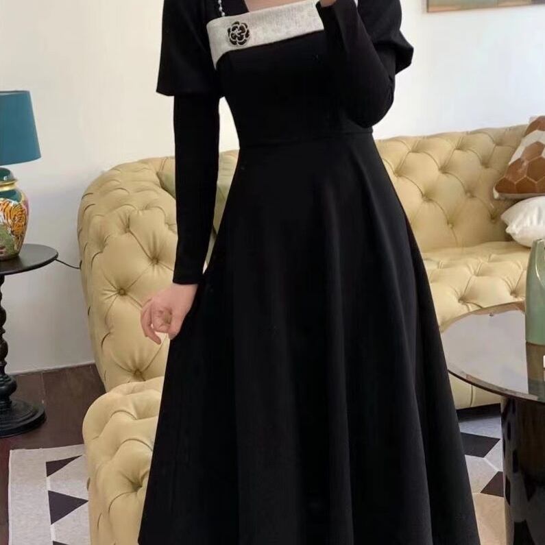 ワンピース フレアワンピース ロング ロング丈 袖あり 長袖 パフスリーブ スクエアネック Aライン ウエストマーク かわいい 大人可愛い 大人 上品 おしゃれ お洒落 かっこいい レトロ 大人女子 キュート ガーリー エレガント 春 秋 冬 10代 20代 30代 40代 50代 60代 レディース 女性用 ママ デート お出かけ 休日 パーティー イベント ホテル ガーデン レストラン ショッピング 着回し モテ インスタ映え サイズ S M L 小さいサイズ 大きいサイズ 色展開 黒 ブラック | Bonny Me