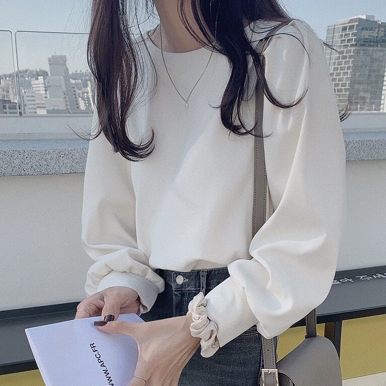 トップス ブラウスシャツストレートラウンドネック ふんわり袖 ギャザー 女らしさ エレガント おしゃれ ゆったり 着やすい ソフト とろみ 春 好印象 エレガント 大人女子 清楚 大人っぽい フェミニン シック 通勤 通学 学生 OL オフィスコーデ モテコーデ 大人女子 オシャレ 細見え スマート見え キレイ見え スッキリ見え 体型カバー 華奢見え ヤセ見え サマ見え こなれ感 韓国 S M L クリーム ブルー | Bonny Me