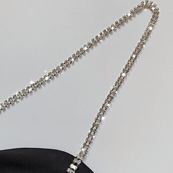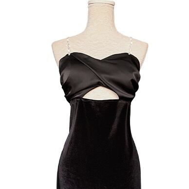 チェーンのストラップがゴージャスでセクシーなベロアのロングワンピース。