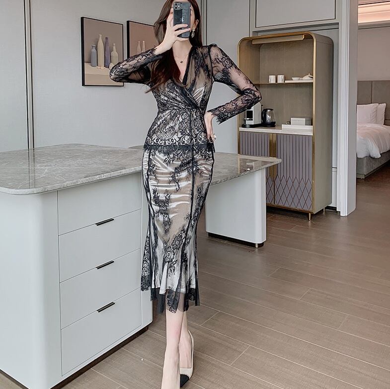 セットアップ 膝下 ミモレ ミモレ丈 袖あり 長袖 Vネック スリム タイト 細身 レース 刺繍 フリル ウエストマーク 透け感 シースルー 上下セット 2点セット ツーピース かわいい 大人 おしゃれ お洒落 セクシー エレガント 主役級 存在感 花柄 小花柄 フラワー 春 夏 秋 10代 20代 30代 40代 50代 60代 レディース 女性用 ママ 女の子 デート お出かけ 休日 着回し 普段使い モテ インスタ映え サイズ S M 色展開 黒 ブラック | Bonny Me