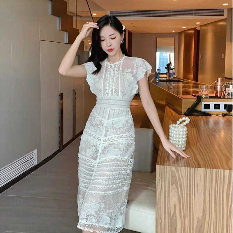 ワンピース デート ワンピドレス ミモレ ミモレ丈 スリム タイト 細身 レース かわいい 大人可愛い きれいめ シンプル カジュアル 大人 上品 おしゃれ お洒落 主役級 存在感 夏 10代 20代 30代 レディース 女性用 OL 学生 デート お出かけ 公園デビュー 女子会 休日 イベント 旅行 着回し 普段使い ファッション コーデ 楽ちん モテ トレンド 流行 インスタ映え S M L 白 ホワイト | Bonny Me