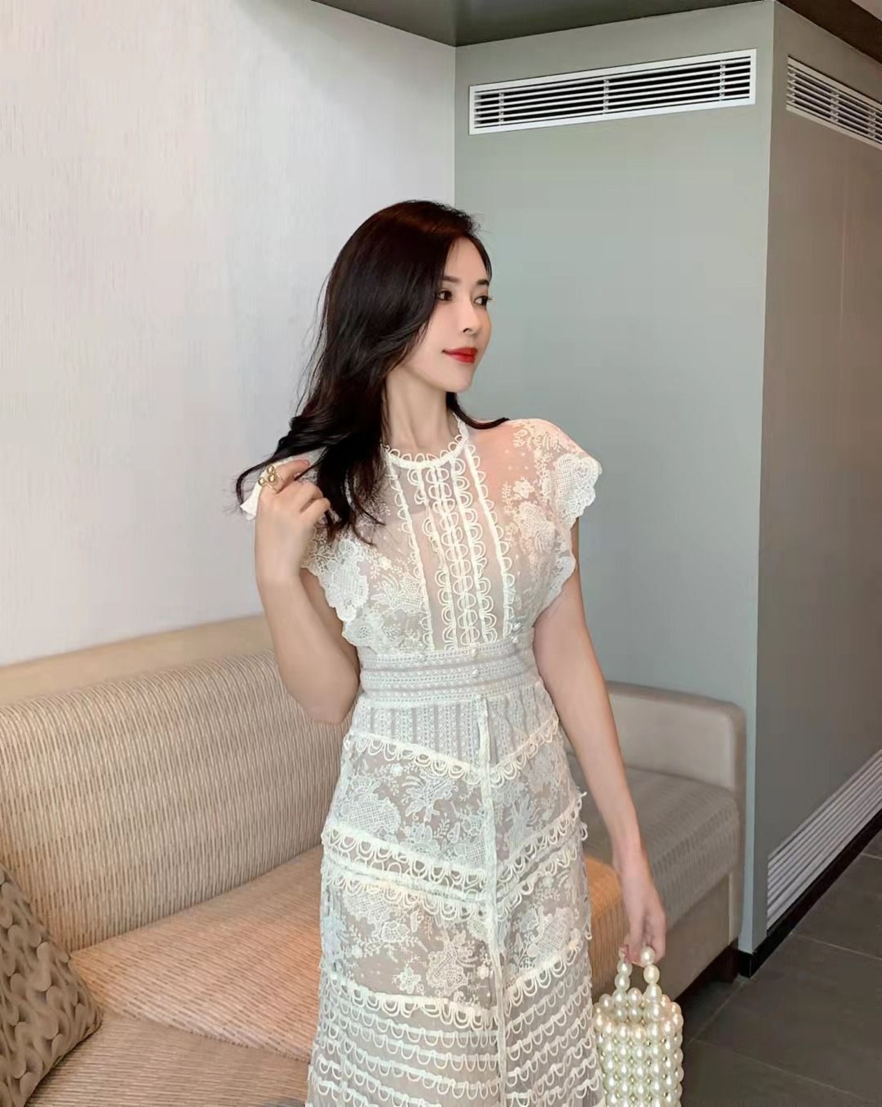 レースが特徴的なワンピース。