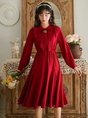 ワンピース デート ミモレ ミモレ丈 袖あり 長袖 フリル かわいい 大人可愛い きれいめ シンプル カジュアル 大人 上品 おしゃれ お洒落 主役級 存在感 春 秋 10代 20代 30代 レディース 女性用 OL 学生 デート お出かけ 公園デビュー 女子会 休日 イベント 旅行 着回し 普段使い ファッション コーデ 楽ちん モテ トレンド 流行 インスタ映え S M L XL 赤 レッド | Bonny Me