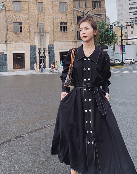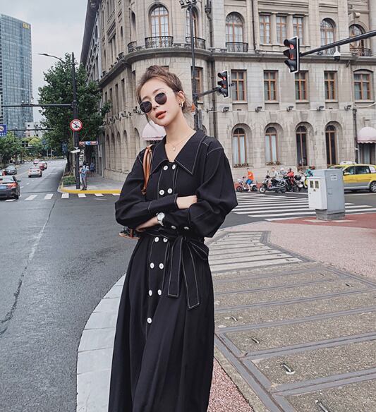 ワンピース デニムワンピース ミモレ丈 袖あり 長袖 Vネック 襟付き ストレート ワイド Iライン リボン ウエストリボン 前開き デニム かわいい 大人可愛い シンプル カジュアル 大人 上品 おしゃれ レトロ こなれ感 ラフ ガーリー 存在感 無地 オールシーズン 10代 20代 デート お出かけ 旅行 高原 ホテル ガーデン 着回し 普段使い 重ね着 楽ちん モテ 体系カバー S M L XL ブラック