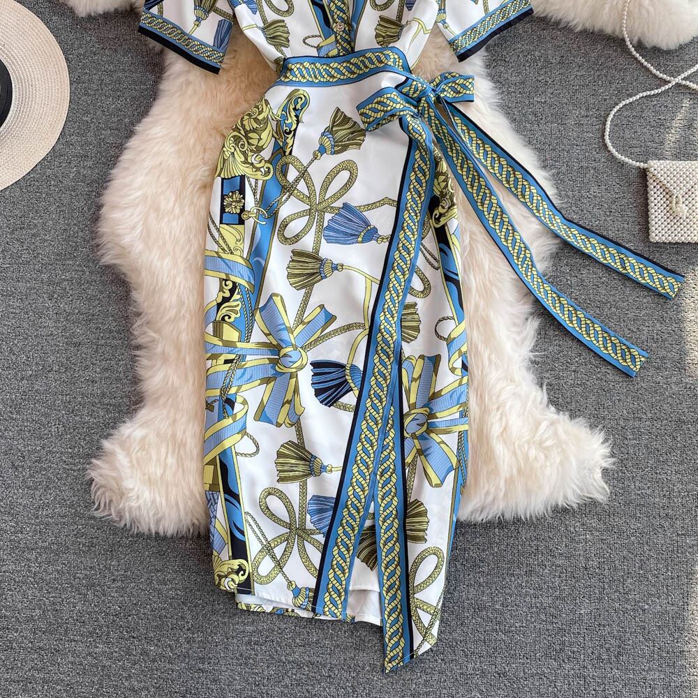 ワンピース ミモレ ミモレ丈 不規則丈 袖あり 半袖 ラウンドネック リボン ウエストマーク ウエストリボン 薄手 かわいい 大人可愛い 大人 上品 おしゃれ お洒落 かっこいい レトロ エレガント 主役級 存在感 柄 プリント 夏 10代 20代 30代 40代 50代 60代 レディース 女性用 ママ デート お出かけ 休日 普段使い 重ね着 お揃い 双子 インスタ映え サイズ S M L XL 2XL 小さいサイズ 大きいサイズ 色展開 白 ホワイト 青 ブルー 黄色 イエロー | Bonny Me