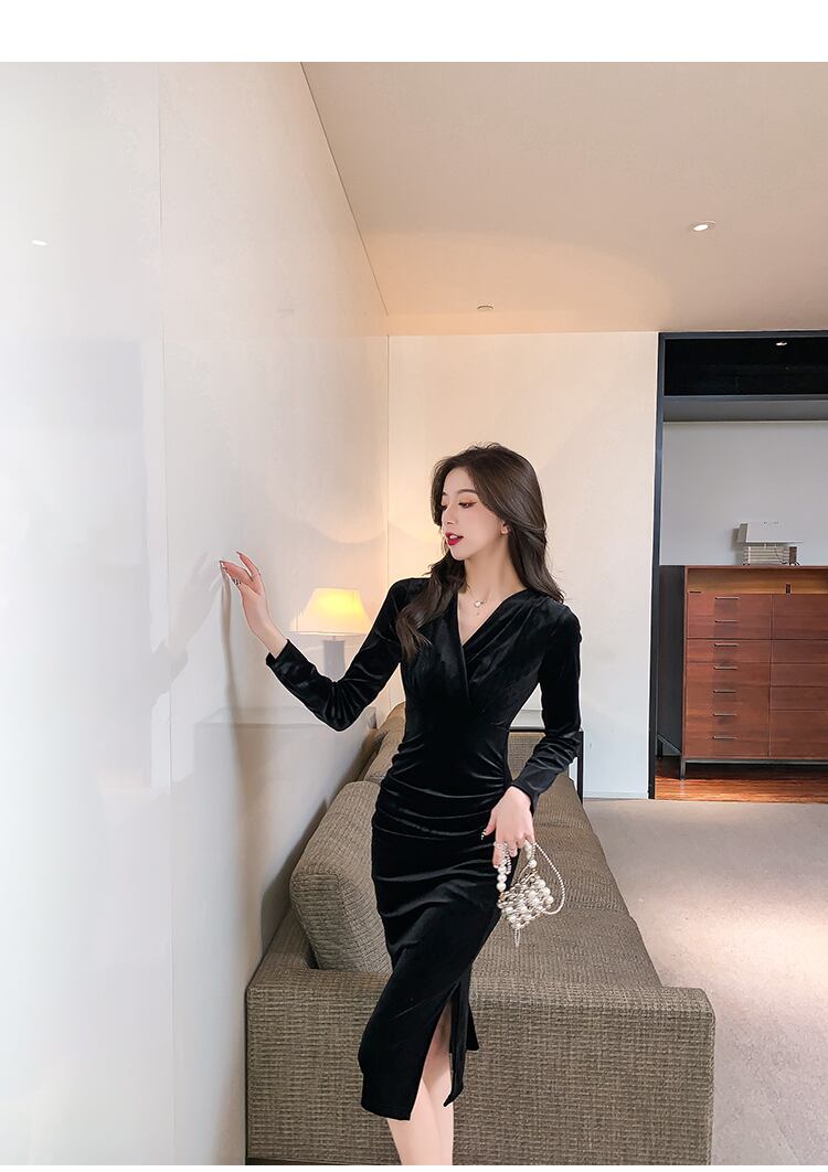 ドレス ワンピース パーティードレス パーティドレス 二次会ドレス ミモレ丈ドレス タイトドレス ワンピースドレス ワンピドレス チャイナドレス 膝丈 ひざ丈 膝下 袖あり 長袖 Vネック 襟なし スレンダー タイト スリット サイドスリット ベロア かわいい 大人可愛い おしゃれ お洒落 大人可愛い 大人女子 ラブリー キュート ガーリー セクシー クラシック チャイナ レディース パーティー イベント 韓国 オルチャン 高見え 二次会 2次会 お呼ばれ パーティ S M L XL 黒 ブラック | Bonny Me