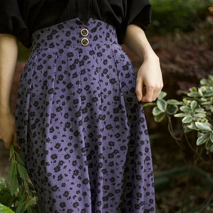 スカート ボトムス ロングスカート プリーツスカート フレアスカート ミモレ ミモレ丈 ロング ロング丈 フレア Aライン プリーツ ハイウエスト かわいい 大人可愛い 大人 おしゃれ レトロ ラブリー キュート ガーリー 花柄 小花柄 フラワー 春 夏 秋 冬 オールシーズン シーズンレス 10代 20代 30代 40代 50代 60代 レディース 女性用 ママ 学生 デート お出かけ 休日 普段使い 重ね着 モテ 体形カバー インスタ映え サイズ フリーサイズ ワンサイズ 色展開 紫 パープル | Bonny Me