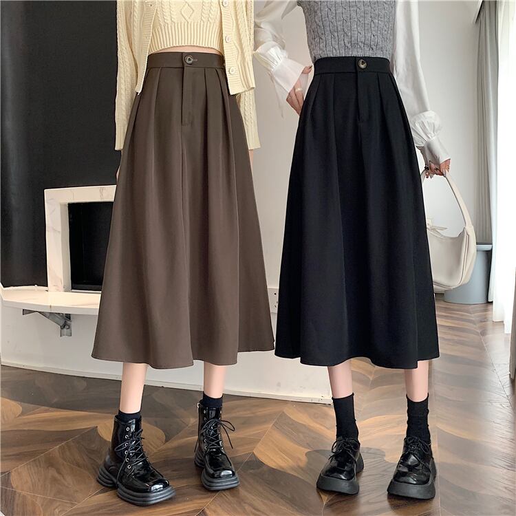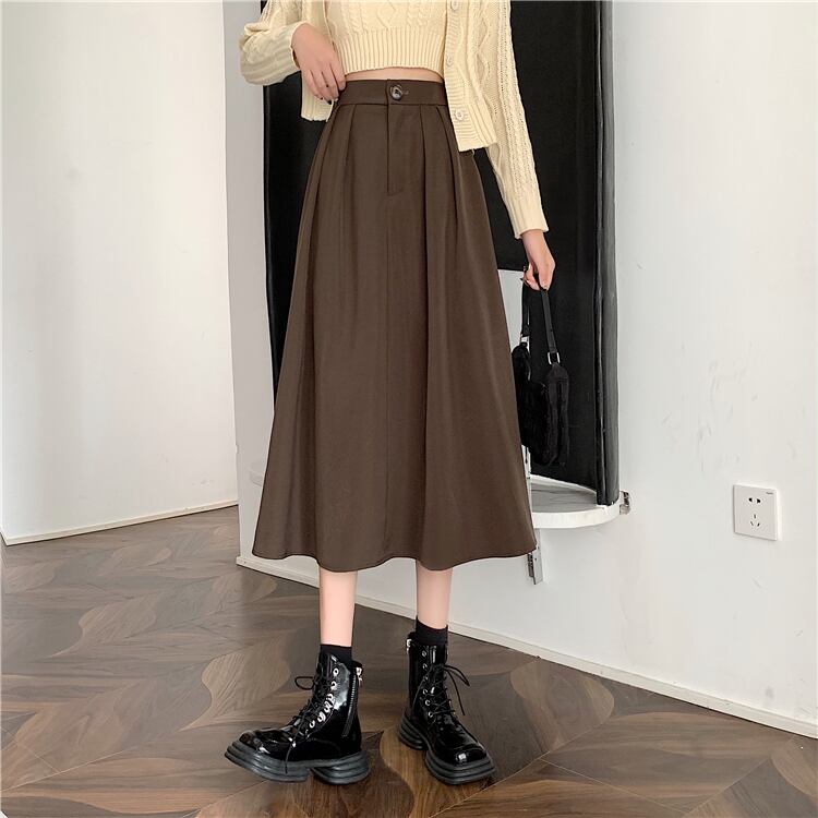スカート ハイウエスト フロントボタン ウエストゴム フレアスカート ギャザースカート 無地 ミドルロング丈 細見え モテコーデ スマート スッキリ見え Aラインスカート 韓国 オルチャン カジュアル おしゃれ ゆったり 着やすい とろみ ラフ 好印象 大人女子 大人っぽい 10代 20代 30代 シック 通勤 通学 学生 OL 細見え スマート見え キレイ見え スッキリ見え 体型カバー 華奢見え ヤセ見え サマ見え こなれ感 韓国 S M L グレー ブラック カレーブラウン | Bonny Me